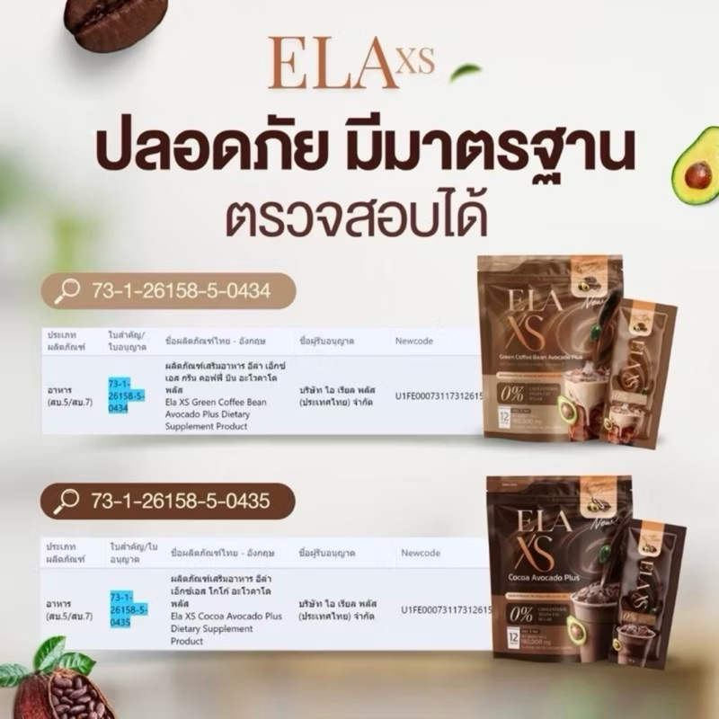Ela XS อีล่า รสชาติ กาแฟ และโกโก้ รวมกับอะโวคาโด