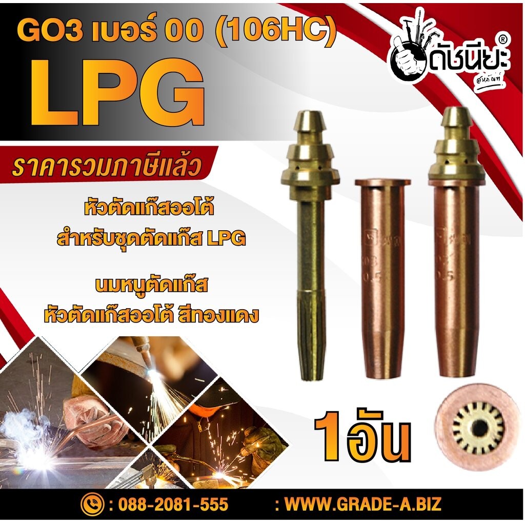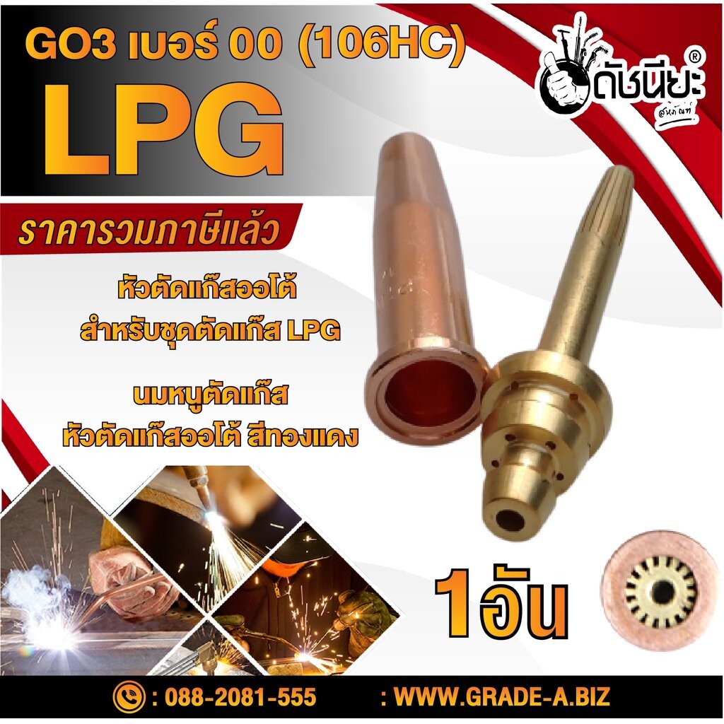 หยิบใส่ตะกร้าGO3เบอร์00(106HC) cutting tip#00 นมหนูตัดแก๊ส หัวตัดแก๊สออโต้ สีทองแดง GO3 No.00 (106HC) LPG Gas Cutting Tip #00 LPG/…