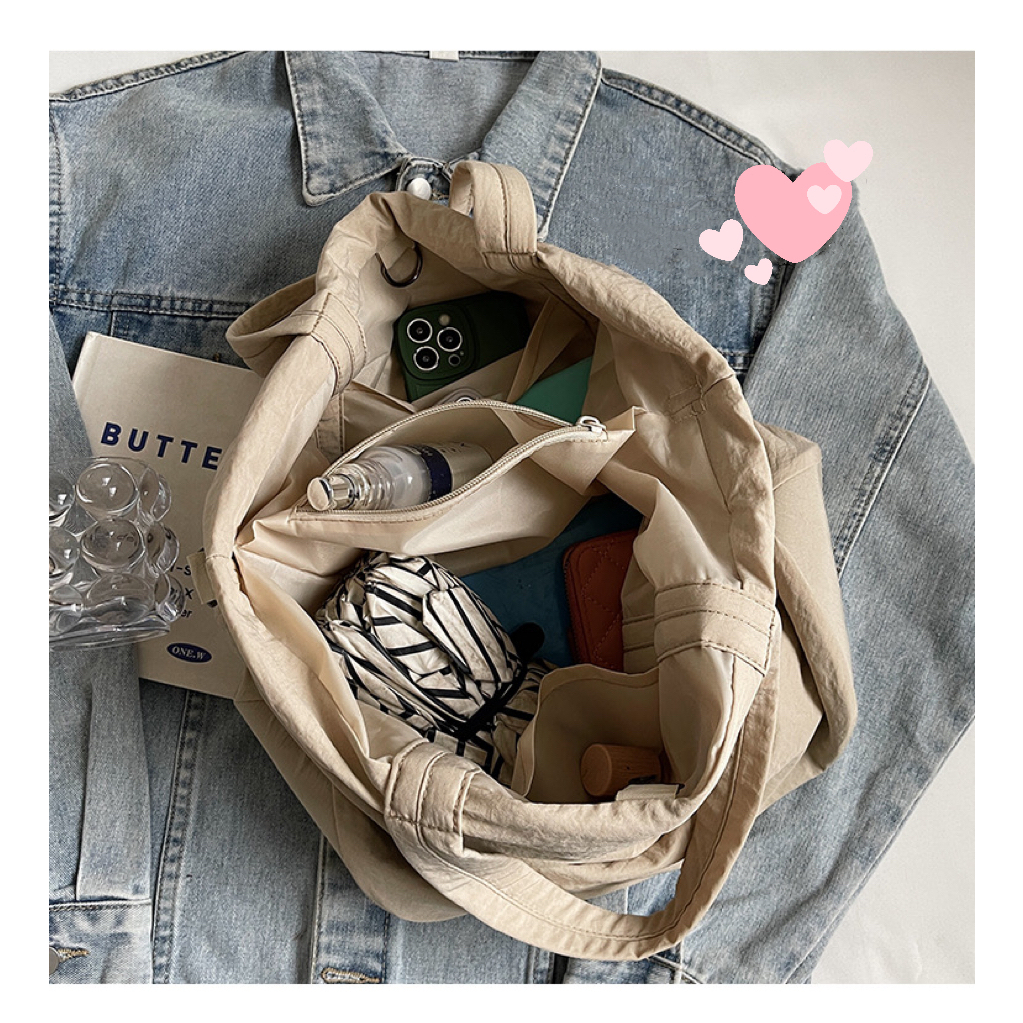 แบน สไตล์เกาหลีผ้าไนลอนถังกระเป๋าผู้หญิงแบบพกพาอเนกประสงค์กระเป๋าใบใหญ่สไตล์กระเป๋าสะพายข้างไหล่เดียวอินเทรนด์