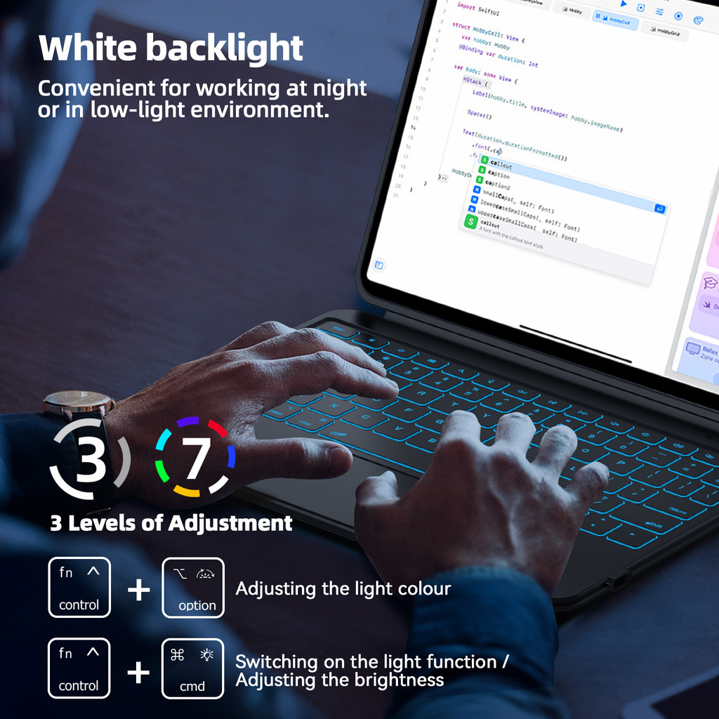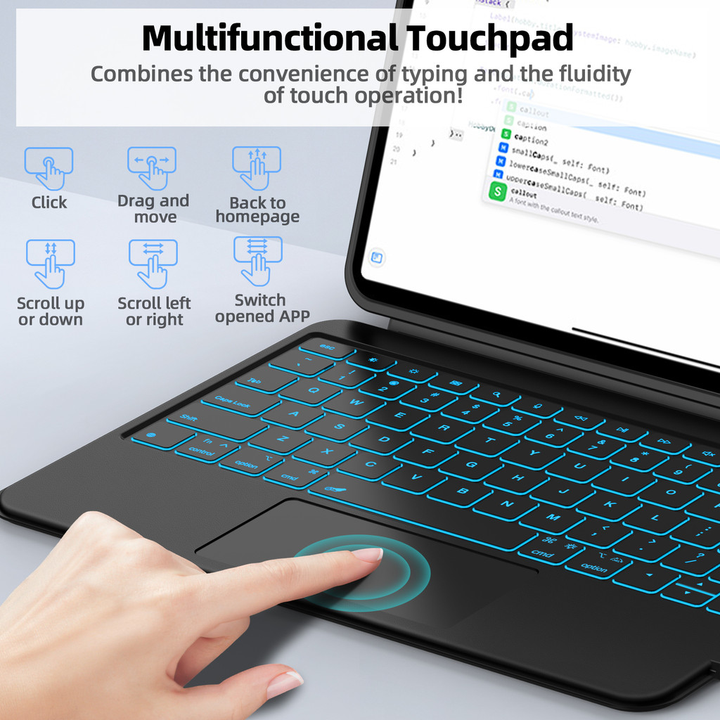 GOOJODOQ คีย์บอร์ดแม่เหล็กพร้อมทัชแพดและไฟแบ็คไลท์การเชื่อมต่อไร้สายอย่างรวดเร็วกันน้ําและดีไซน์มีสไตล์
