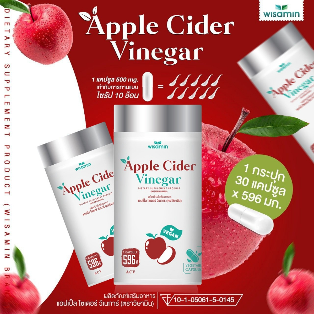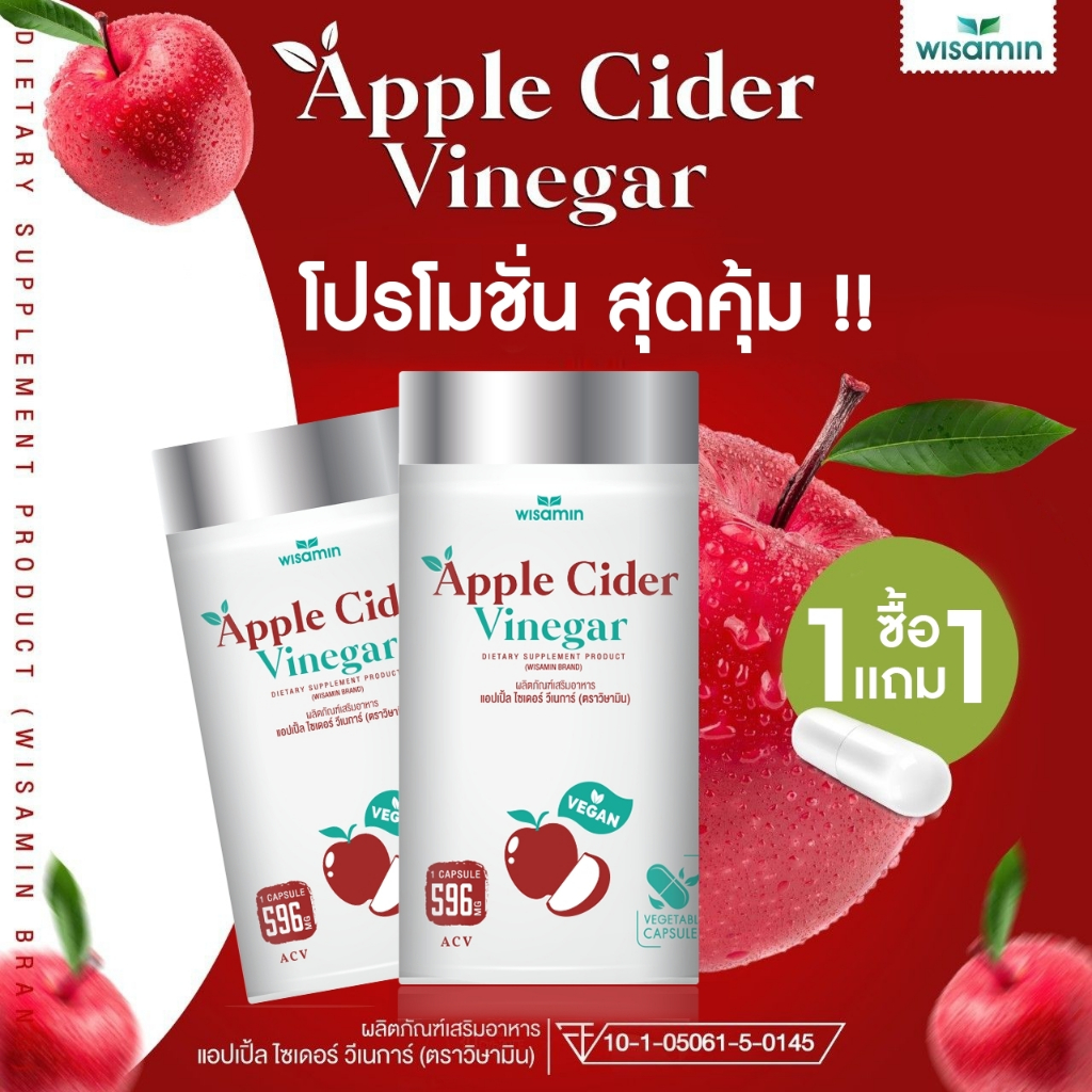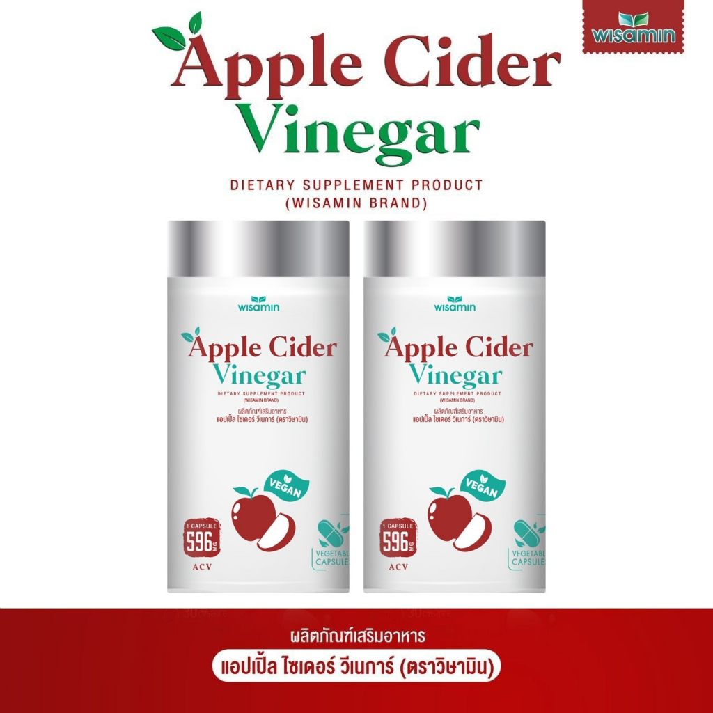 (แพคคู่ 2 กระปุก) APPLE CIDER VINEGAR แอปเปิ้ล ไซเดอร์ วีเนการ์ แคปซูล 500 mg. (ตราวิษามิน) จำนวน 2 กระปุก รวม 60 แคปซูล