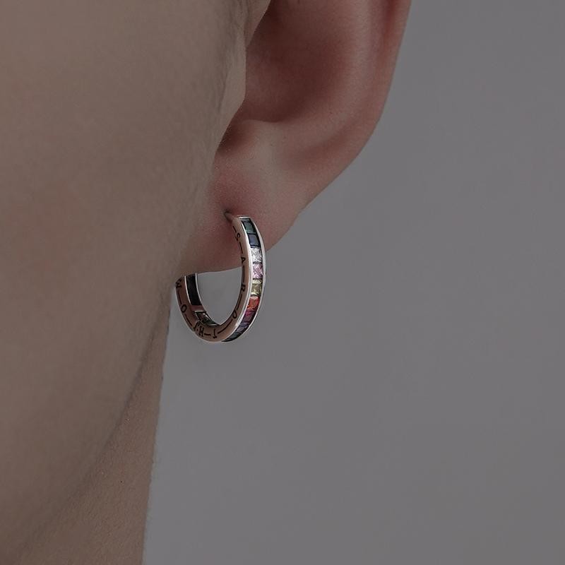 ต่างหูเงินแท้ผู้ชายต่างหูเพทายแสงหรูหราเรียบง่ายต่างหูผู้หญิง
