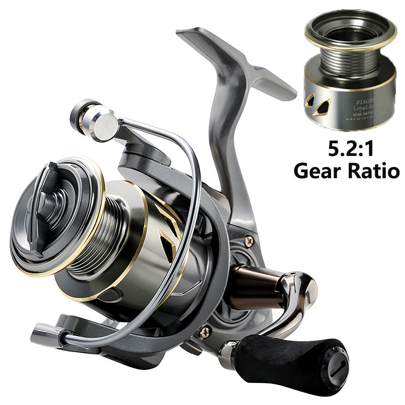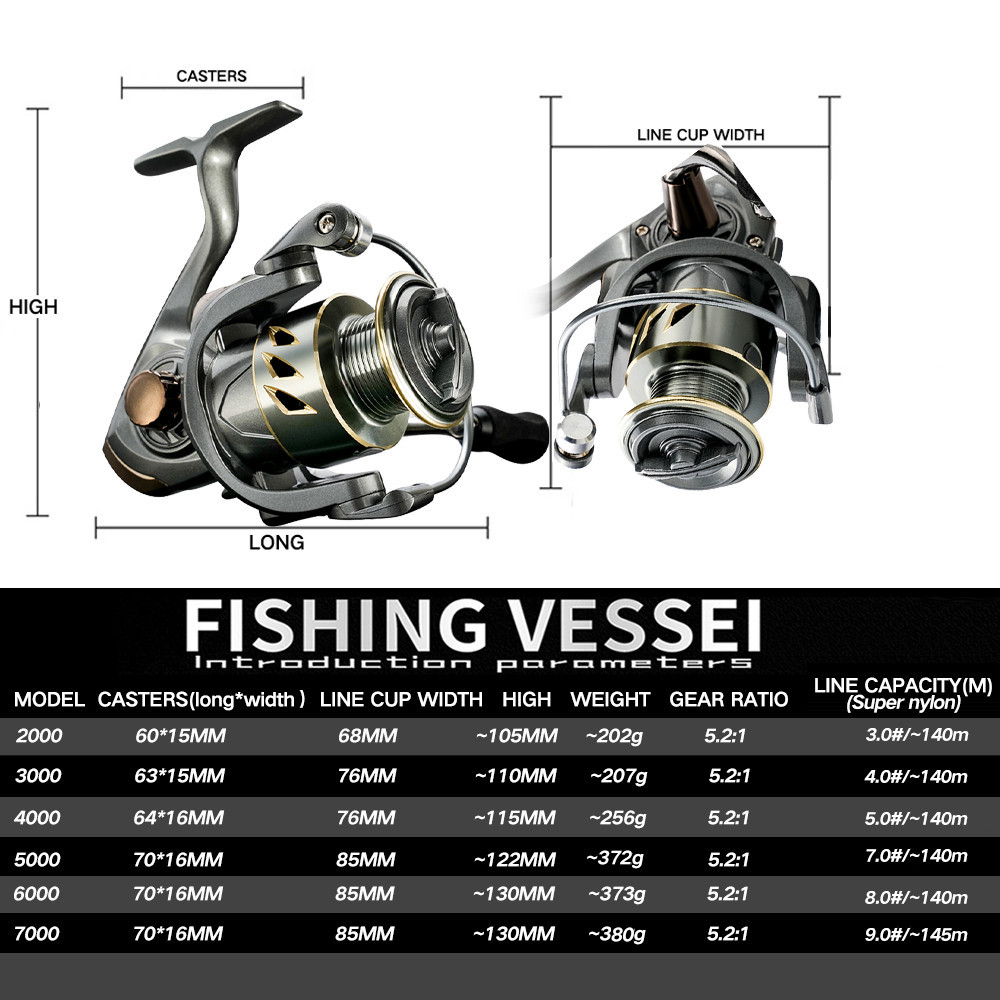 รอกปั่นน้ำหนักเบา 2000 3000 4000 5000 6000 7000 ถ้วยลวดโลหะ 5.2: 1 อุปกรณ์ตกปลาล่อ 8 กก. ลากสูงสุดสำหรับปลาคาร์พเบส
