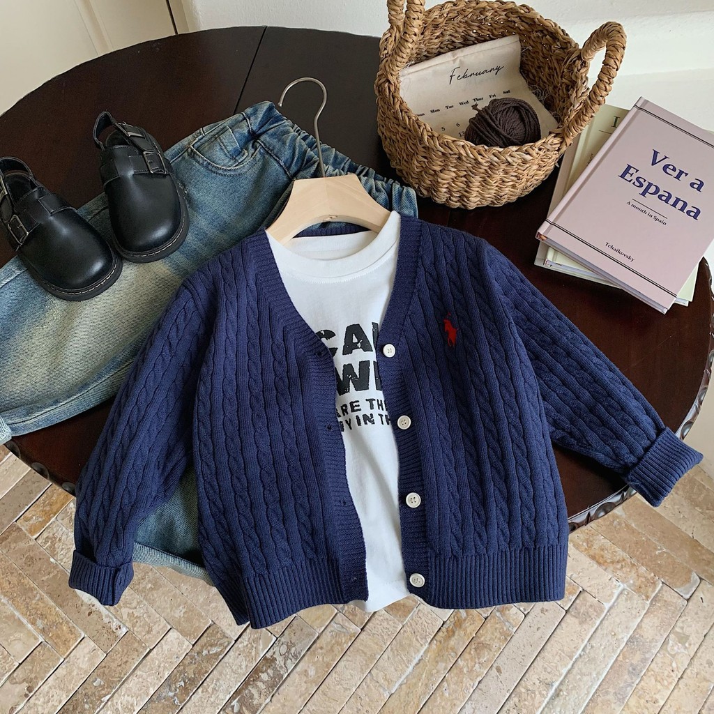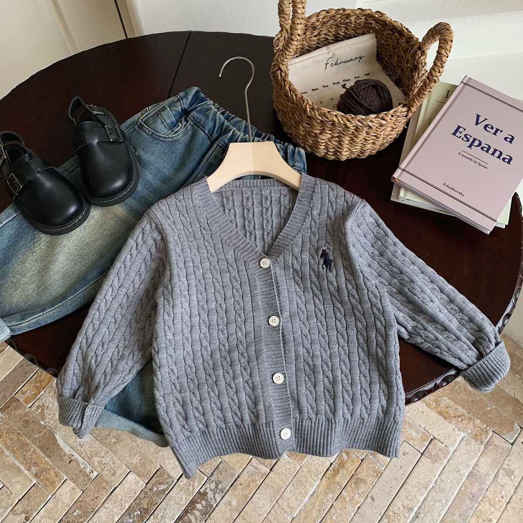 เสื้อกันหนาวเด็กฤดูใบไม้ร่วงสไตล์ใหม่เสื้อผ้าเด็กเสื้อกันหนาวคาร์ดิแกนชายหญิงสีทึบแจ็คเก็ตคอวี ของฉัน0017