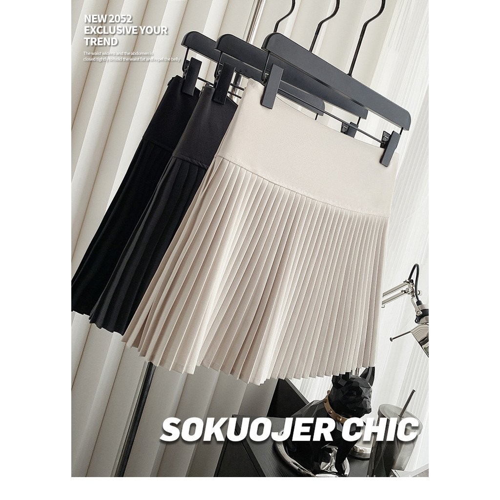 ชุดสูทคุณภาพสูงปี 2025 สำหรับผู้หญิง กางเกงกระโปรงจีบเอวสูง A-line แบบไม่ยับและป้องกันการโชว์