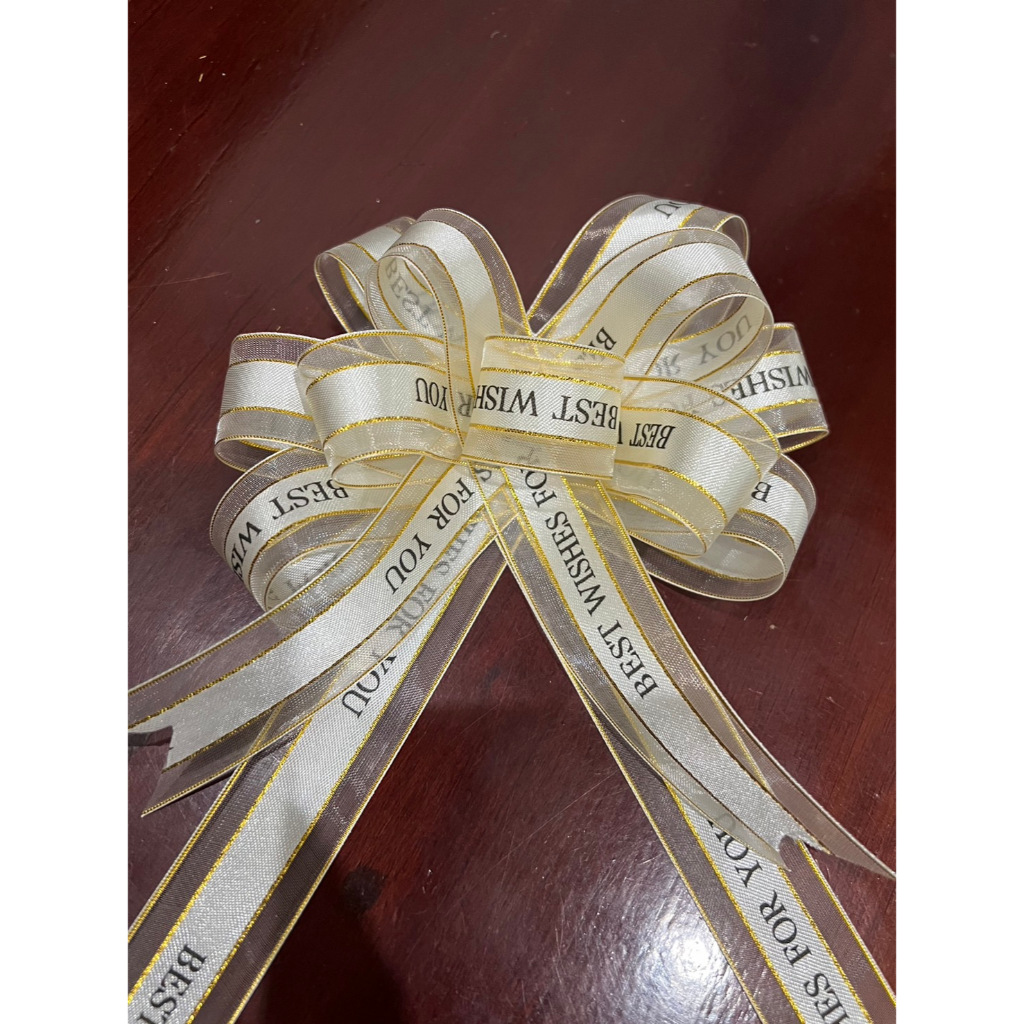โบว์ติดของขวัญ โบว์ผ้าสีขาวพิมลาย ใหญ่ ขนาด10-12ซม. พร้อมส่ง โบว์ผุกดอกไม้ โบว์ริบบิ้นอย่างดี
