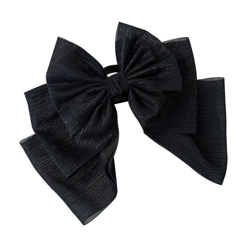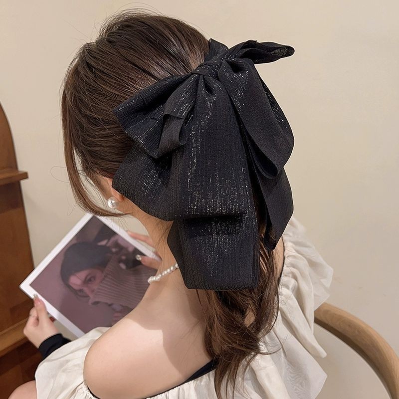 กิ๊บติดผมโบว์ขนาดใหญ่หลายชั้นผ้าซาตินสีดําเครื่องประดับผมริบบิ้นผ้าผู้หญิง