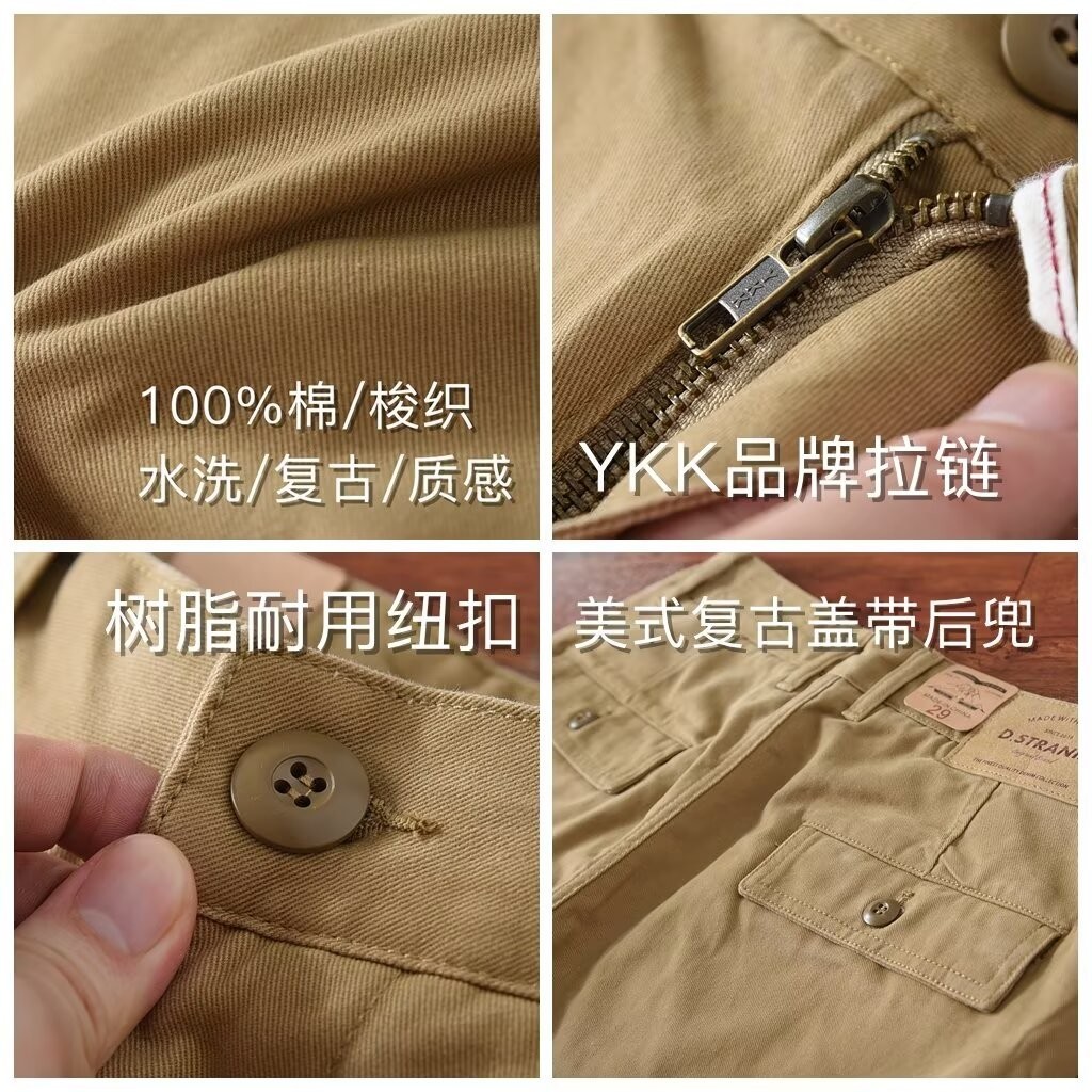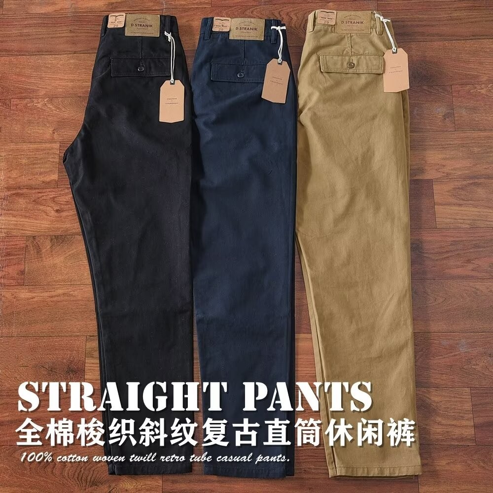กางเกงผู้ชายใหม่วินเทจผ้าฝ้ายแท้ล้างตรงสินค้าที่เดินทางมาพักผ่อน