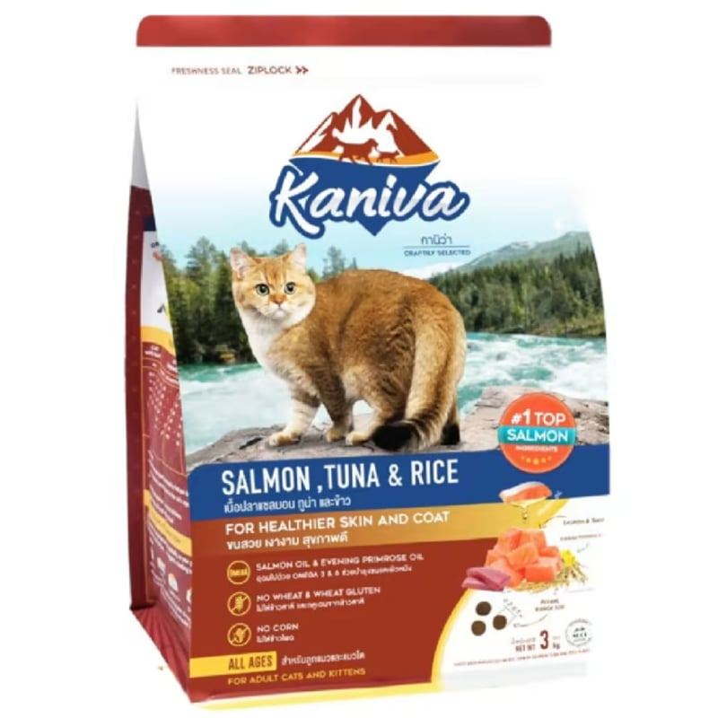 [จัดส่งจากคลัง] KANIVA คานิว่าอาหารแมวสูตรปลาแซลมอนทูน่าและข้าว 3กก. [0745760629510]