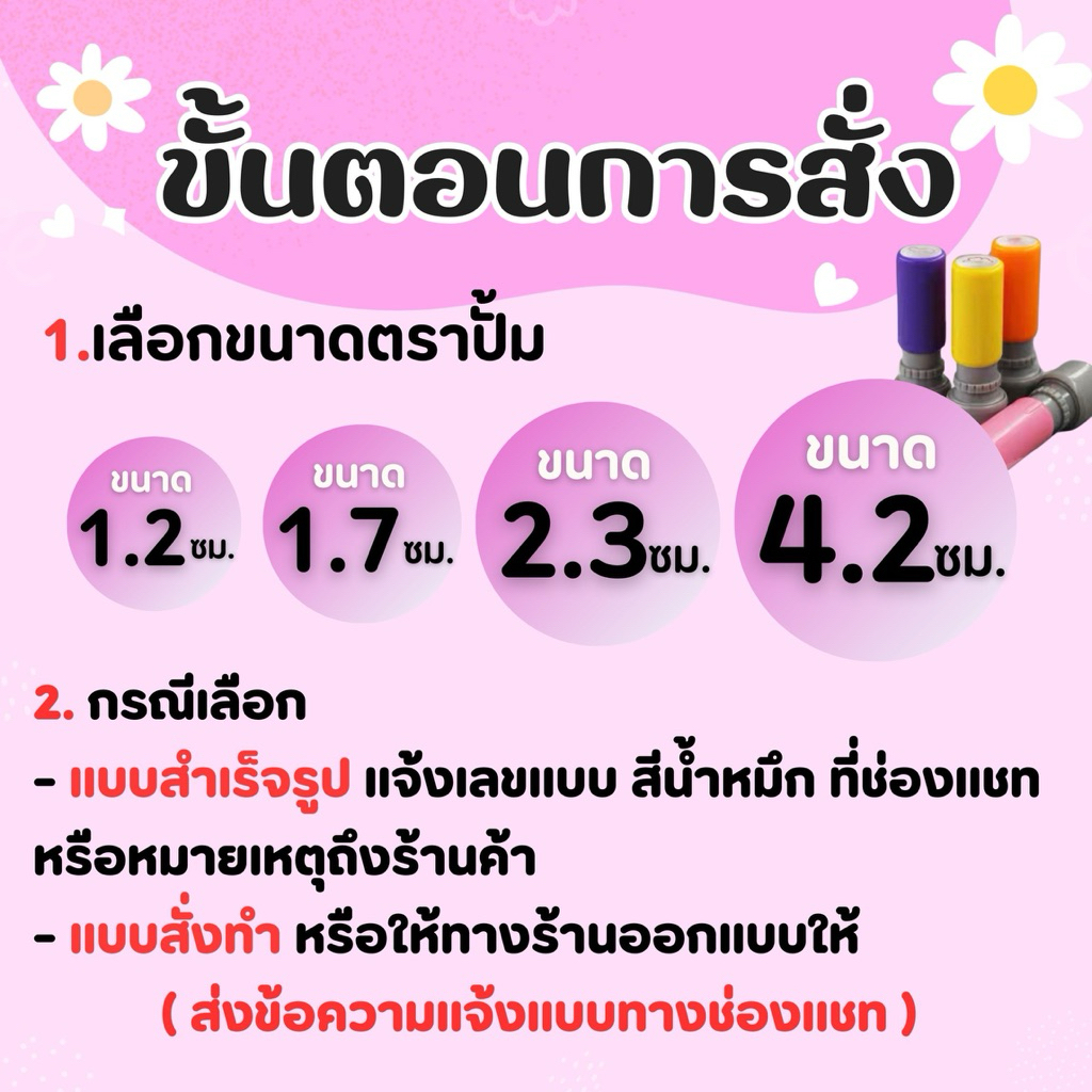 | Model | ขนาด 1.2 cm., สั่งทำ / แจ้งช่องแชท, ขนาด 1.7 cm., สั่งทำ / แจ้งช่องแชท, ขนาด 2.3 cm., สั่งทำ / แจ้งช่องแชท, ขนาด 4.2 cm., สั่งทำ / แจ้งช่องแชท, ขนาด 1.2 cm., กดซื้อ / หมึกเติม, ขนาด 1.7 cm., กดซื้อ / หมึกเติม, ขนาด 2.3 cm., กดซื้อ / หมึกเติม, ขนาด 4.2 cm., กดซื้อ / หมึก |