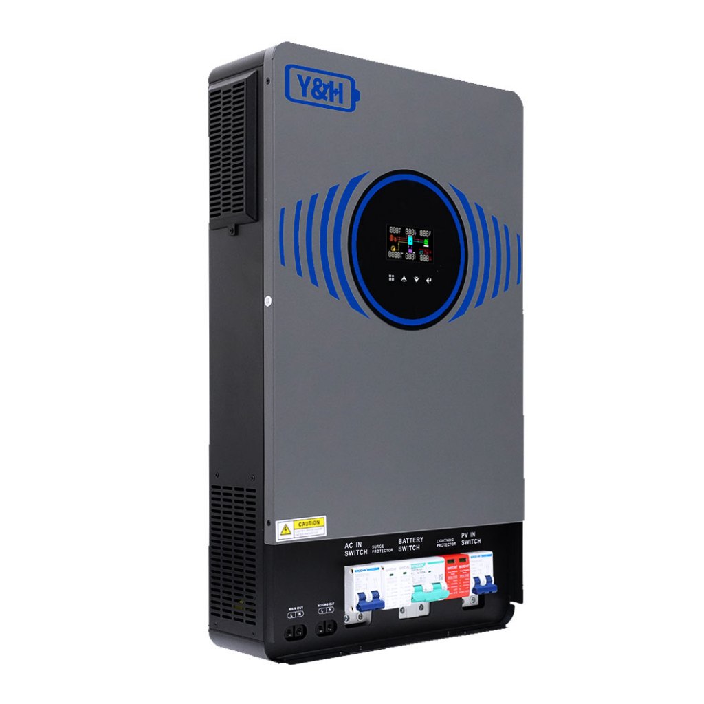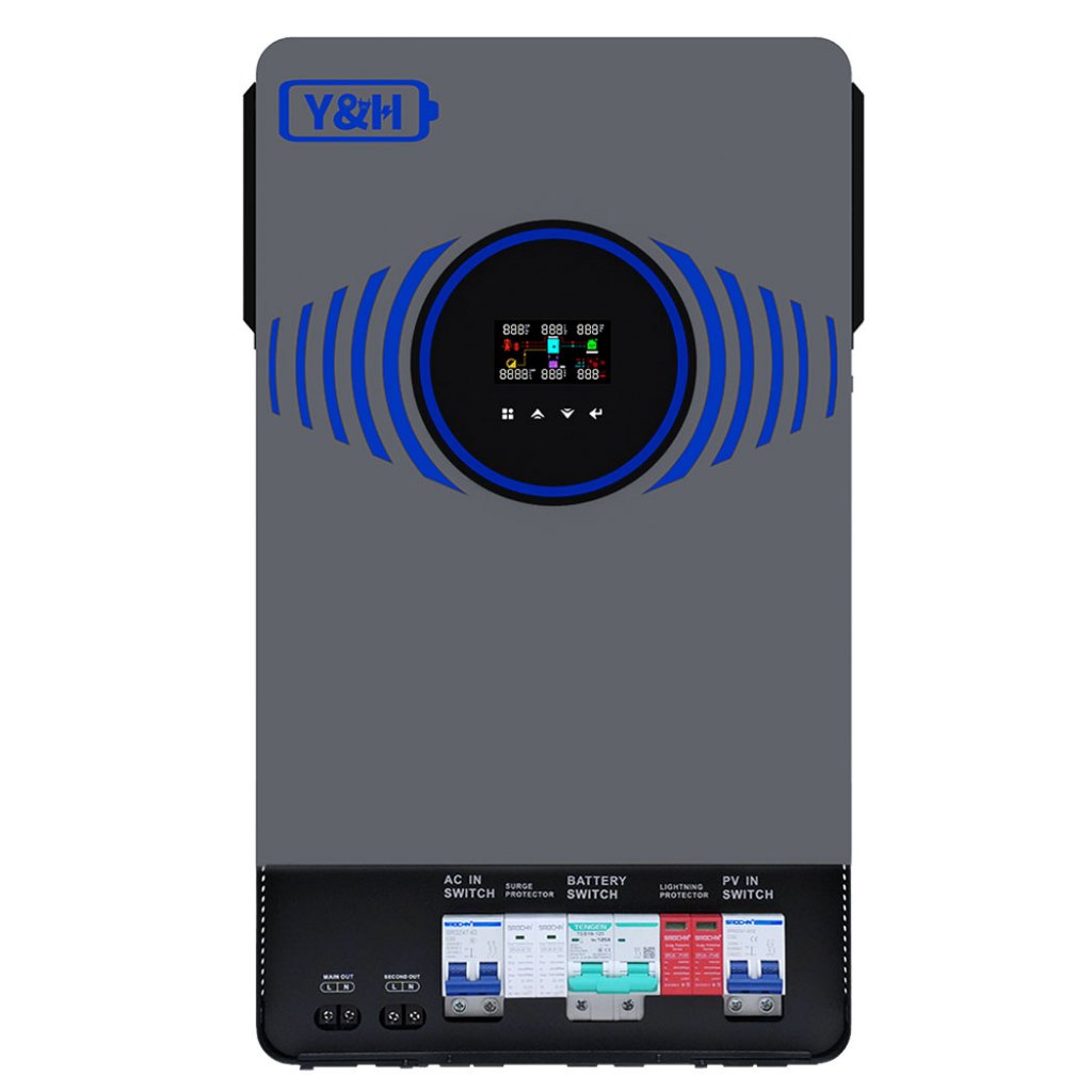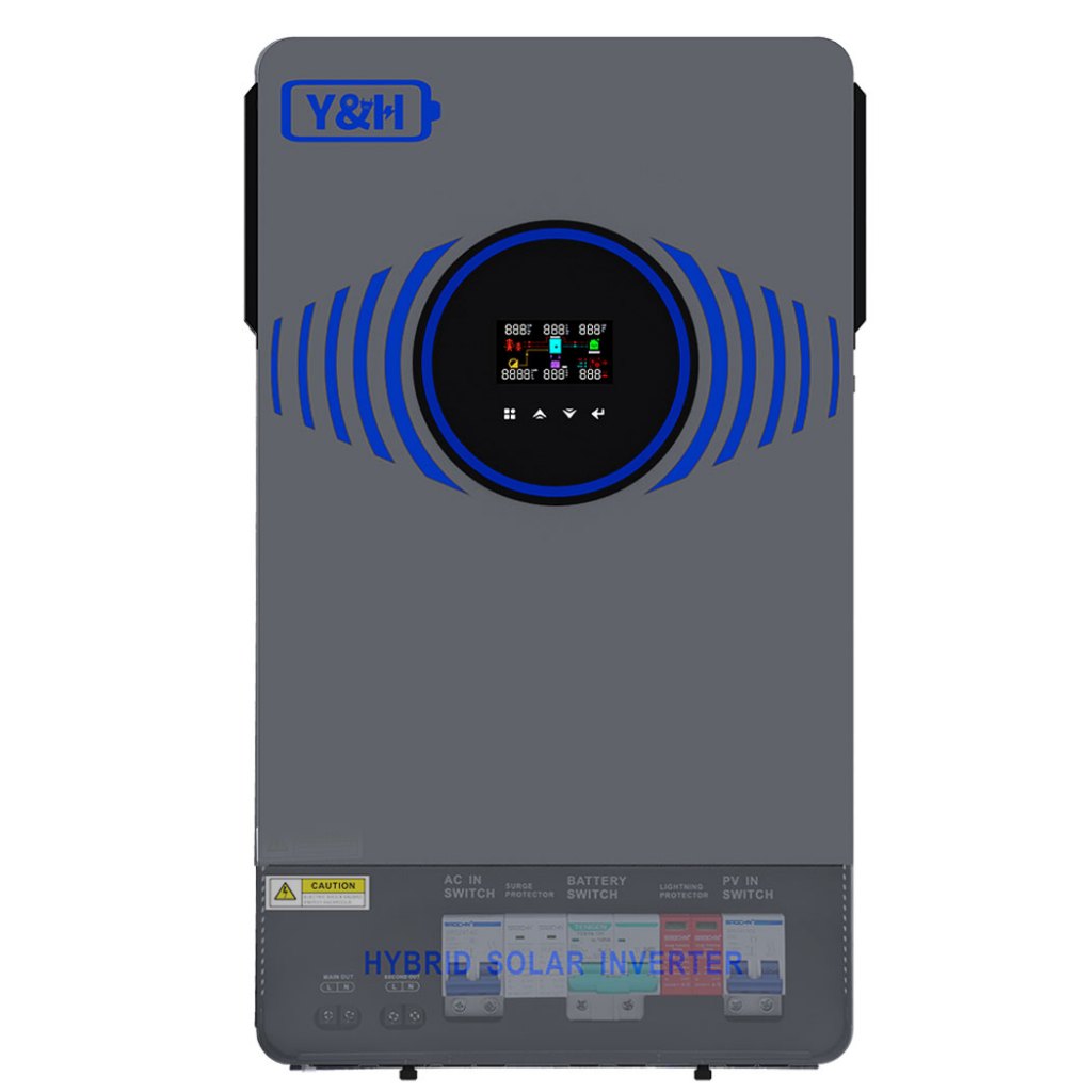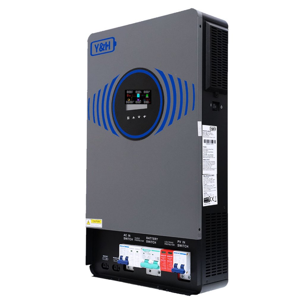 Y&H อินเวอร์เตอร์ไฮบริดโซลาร์ 4.2KW/6.2KW 24V/48VDC สวิตช์ลมในตัวและระบบป้องกันฟ้าผ่า เอาต์พุตคู่คลื่นไซน์บริสุทธิ์ AC220V การสื่อสารคู่ WIFI + BMS เครื่องชาร์จโซลาร์ MPPT 120A