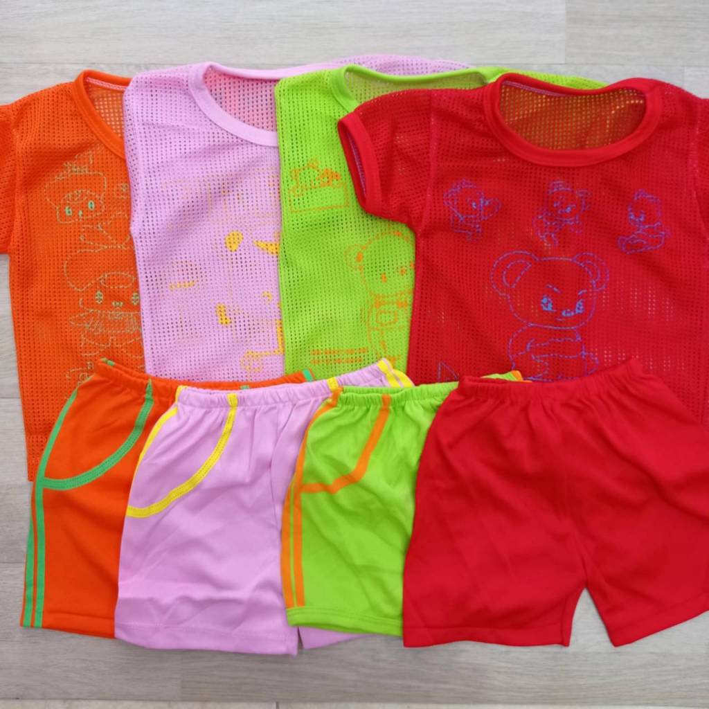 -ชุดเสื้อคอกลมเด็ก เสื้อตาข่าย ชุดมีแขนรูใส่สบายไม่ร้อน ป้องกันการอับชื้นซักง่าย แห้งไว