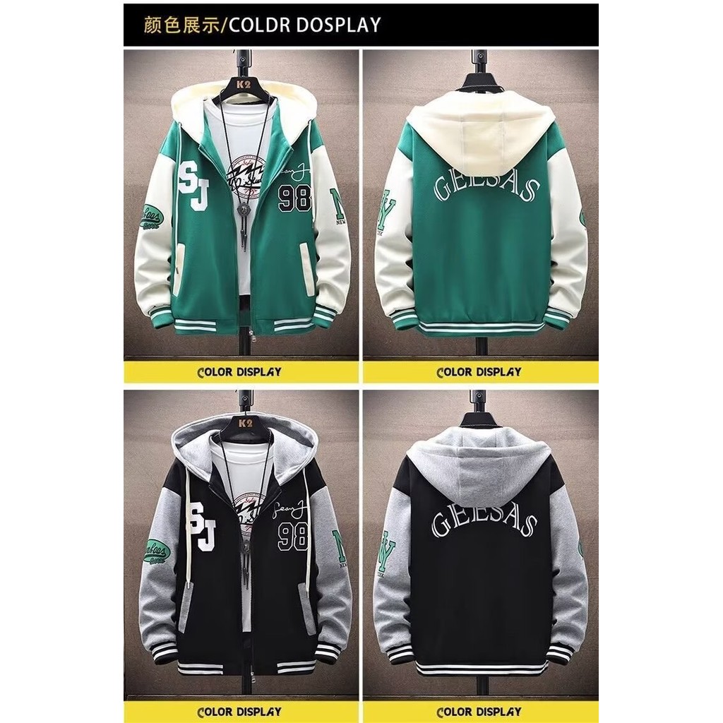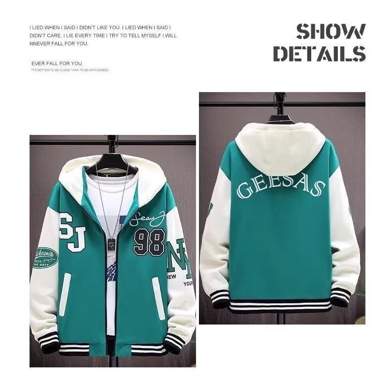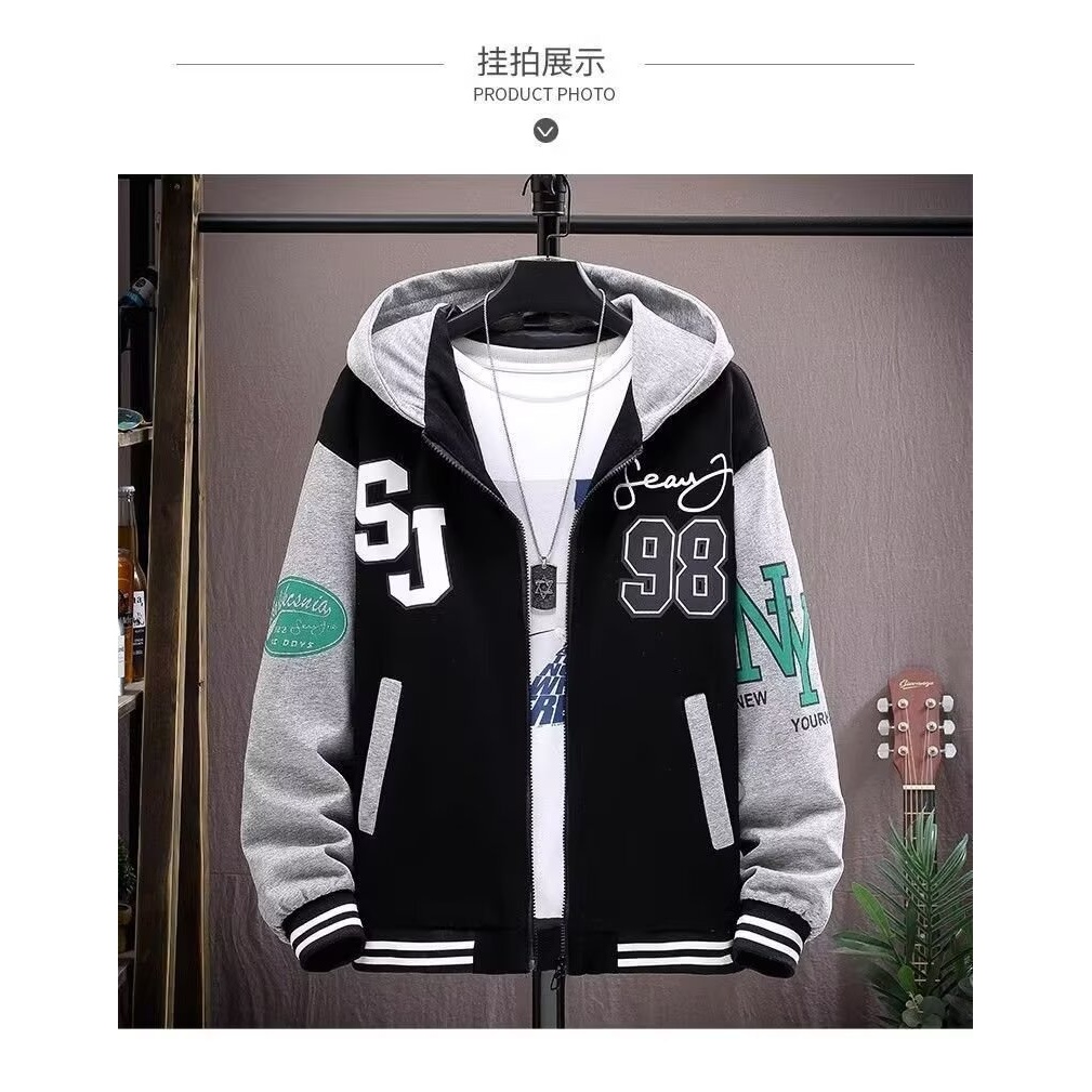 หยิบใส่ตะกร้าRetro Cargo Jacket เสื้อแจ็คเก็ตผู้ชายหลวมเย็บ Contrast สี Hooded Sweatshirt