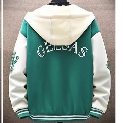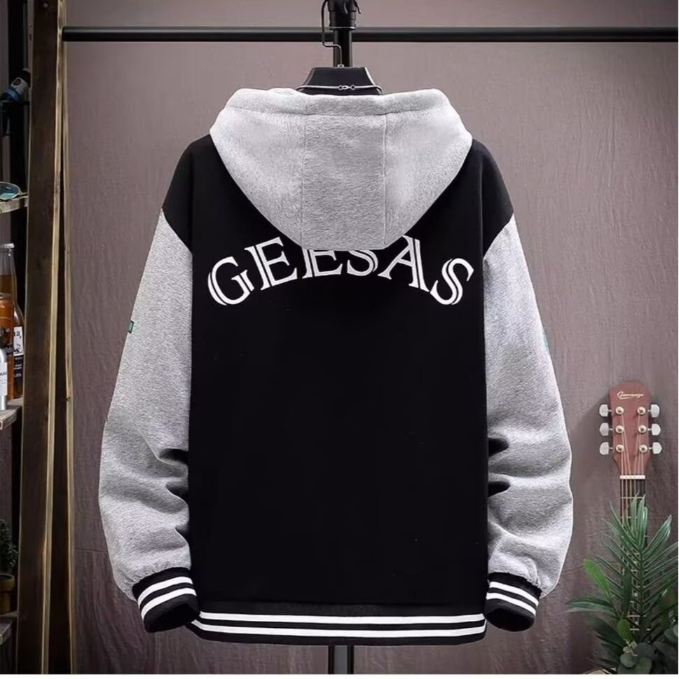 Retro Cargo Jacket เสื้อแจ็คเก็ตผู้ชายหลวมเย็บ Contrast สี Hooded Sweatshirt
