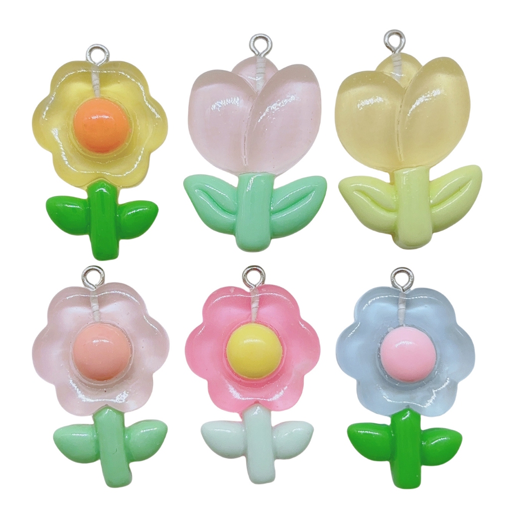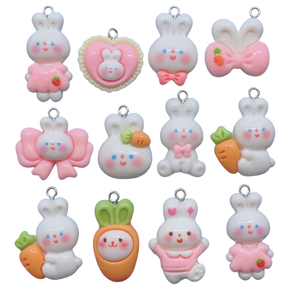 10ชิ้นเสน่ห์น่ารักสําหรับเครื่องประดับ ทําเอง ทําอุปกรณ์เรซิ่นการ์ตูนกระต่ายดอกไม้จี้ต่างหูสร้อยคอจี้