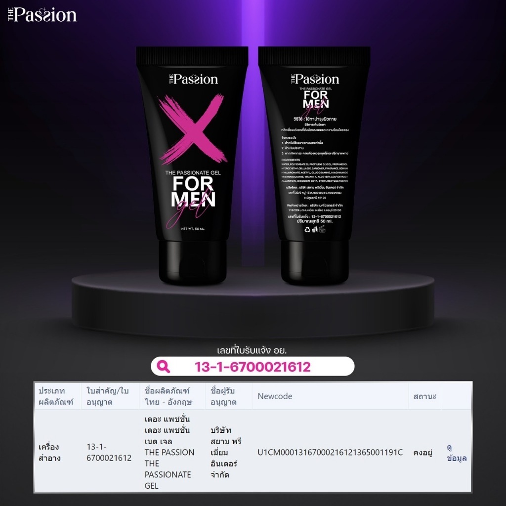 The Passion Gel For Men เจลหล่อลื่น เจลนวดท่านชาย ให้ความลื่นที่ยาวนาน กลิ่น Romantic ปริมาณ 50ml