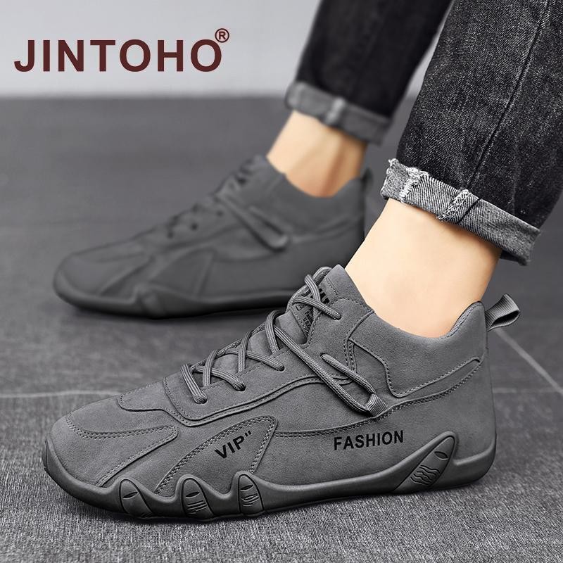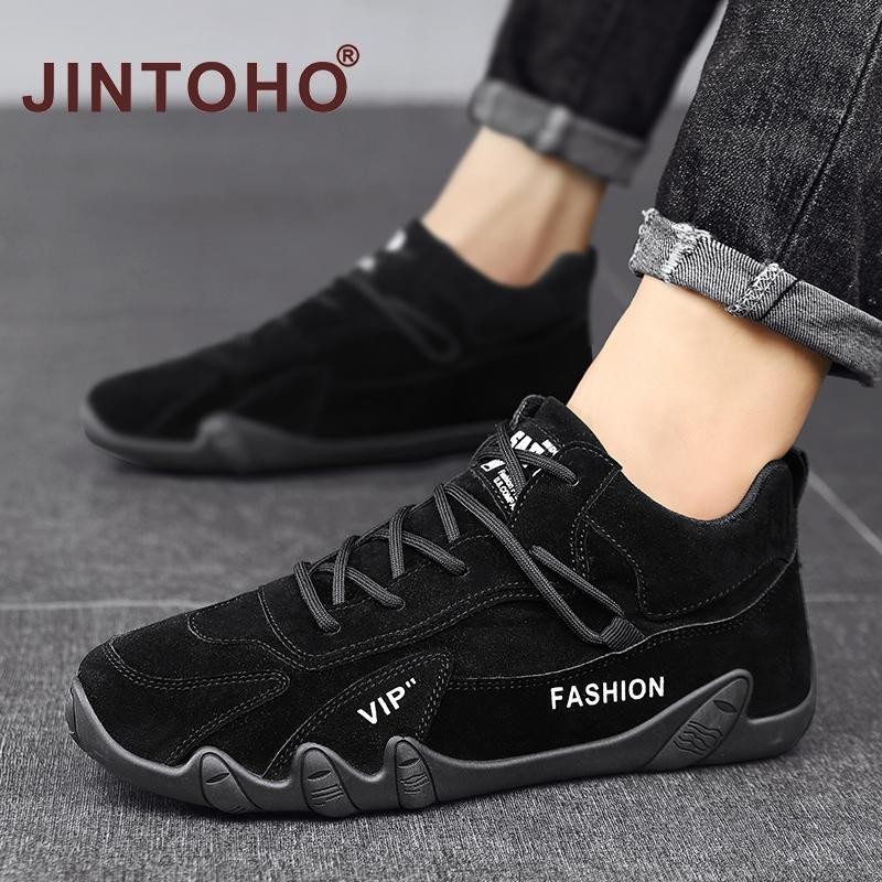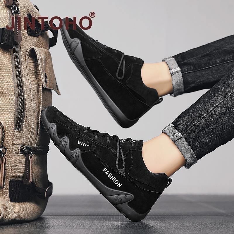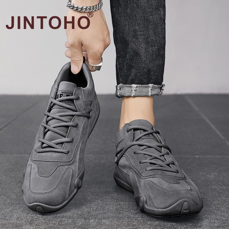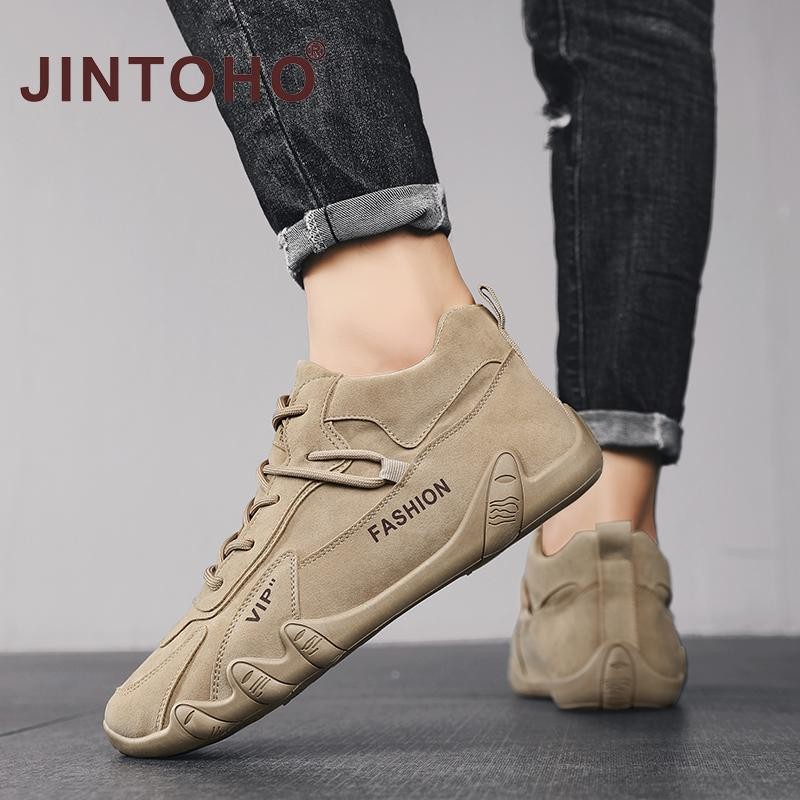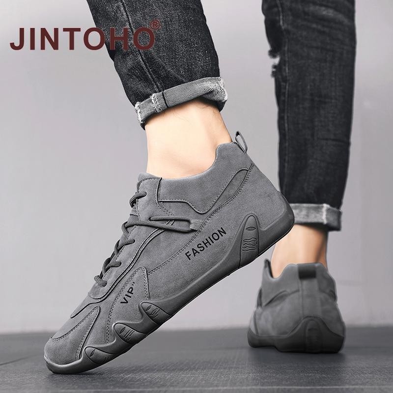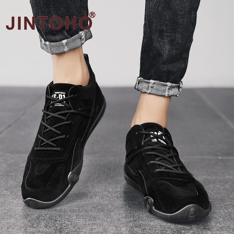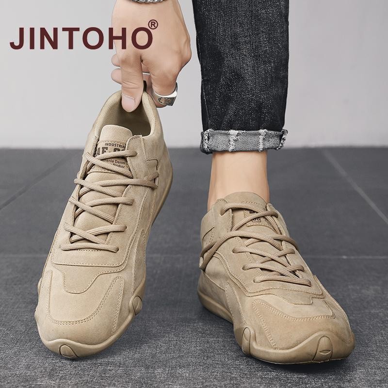 จินโตโฮ ราคาถูกผู้ชายรองเท้าทํางานลําลองรองเท้าหนังสีน้ําตาลรองเท้าผ้าใบยางกันลื่น