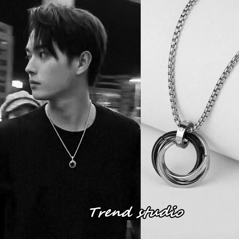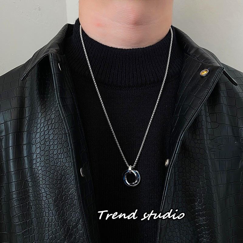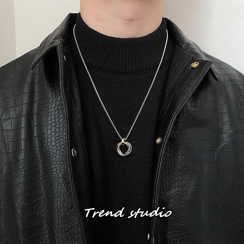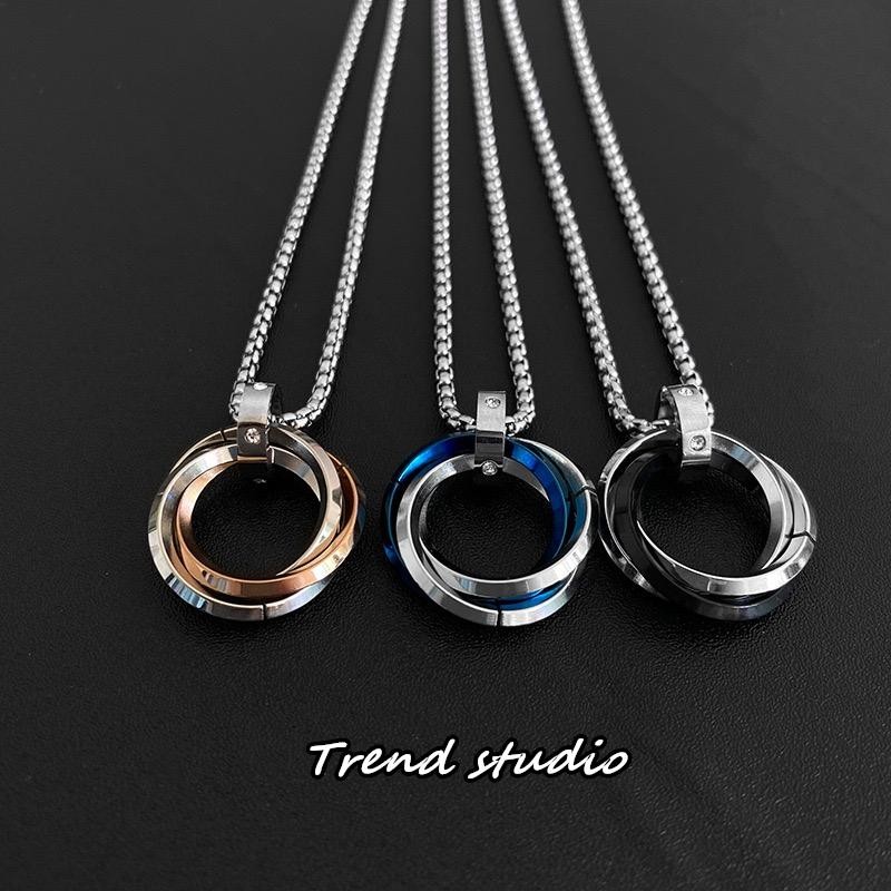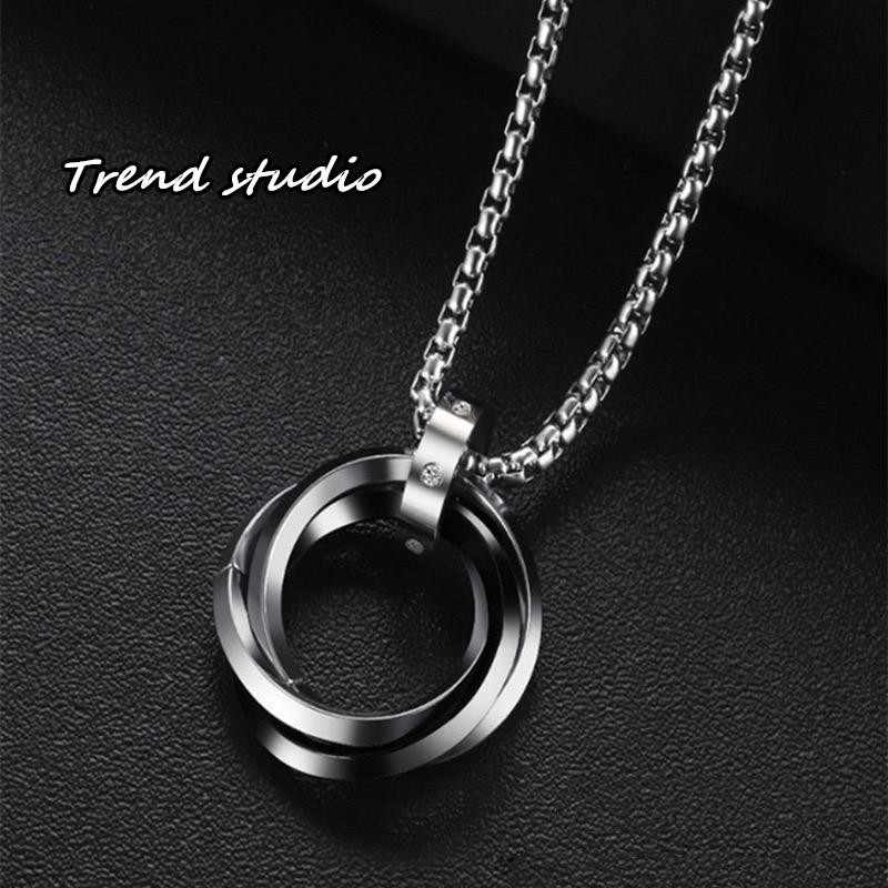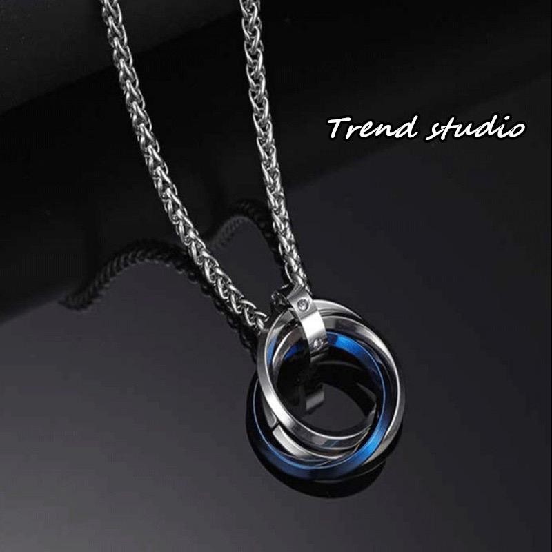 สร้อยคอสแตนเลสสุดเก๋ แหวนทั้ง 3 วงนี้รวมกันและมี 3 สีให้เลือก สร้อยคอแฟชั่นสไตล์เกาหลี สไตล์โมเบียส