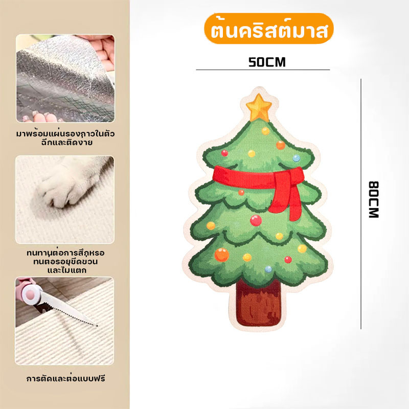 พรมลับเล็บแมว ต้นคริสต์มาส แผ่นลับเล็บแมว แบบติดผนัง ป้องกันรอยขีดข่วน มีกาวในตัวทนต่อการสึกหรอและรอยขีดข่วน