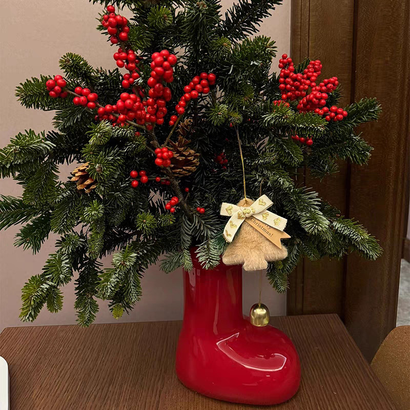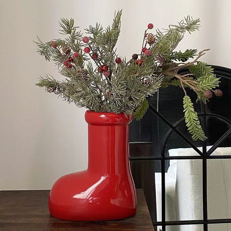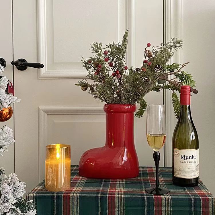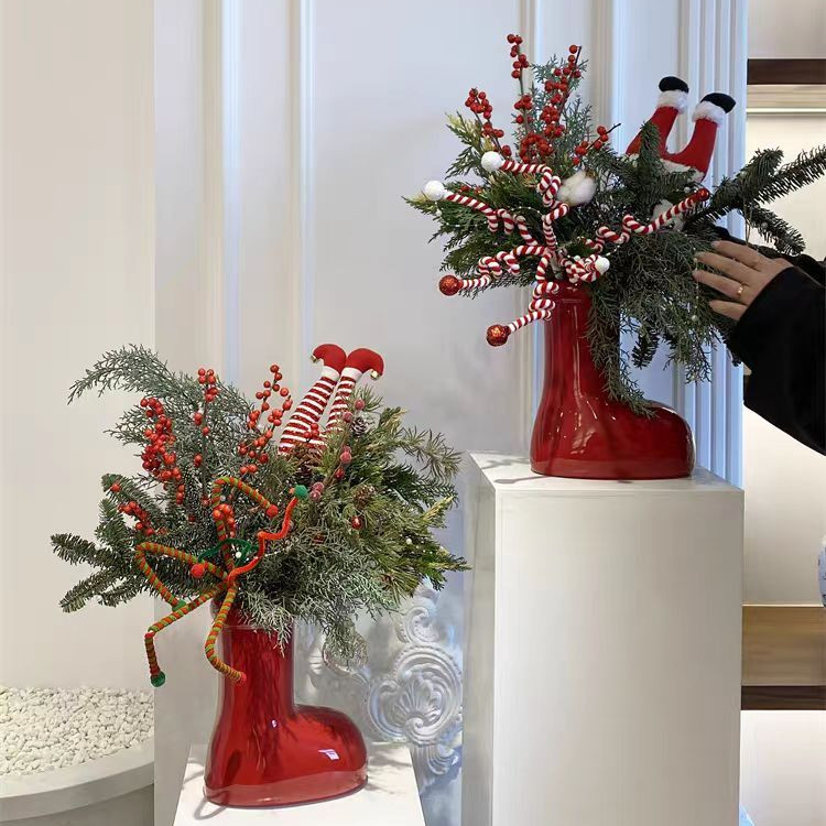 RED BOOT vase Christmas Creative Ceramic vase Decoration DIY การจัดดอกไม้ของตกแต่งบ้าน
