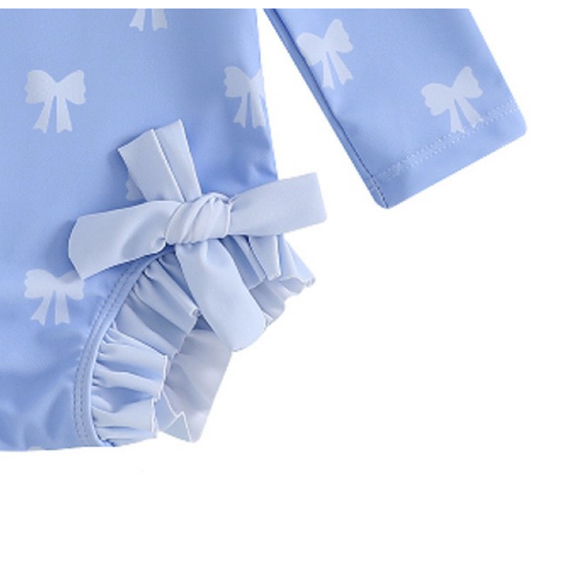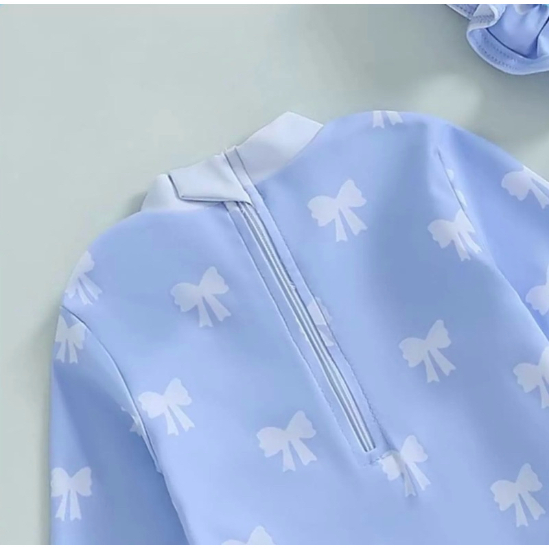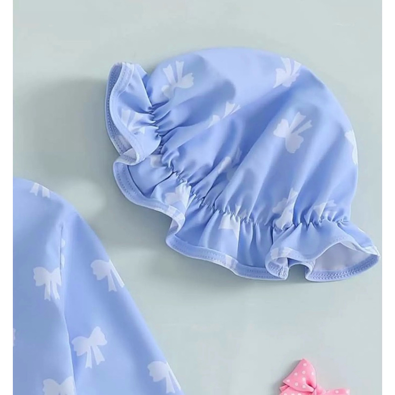 👶🏻 ชุดว่ายน้ำแขนยาวลายโบว์สุดน่ารัก มาพร้อมหมวกเข้าชุด