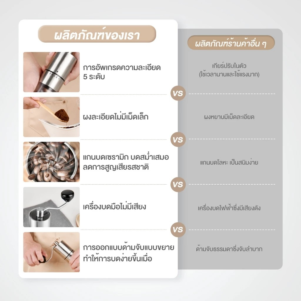 1. การปรับความละเอียด 5 ระดับ ที่ได้รับการอัพเกรดพร้อมระดับการบดที่แตกต่างกันให้คุณเลือก
