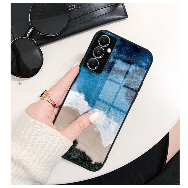 ปลอกแก้ว Samsung Galaxy A34 M34 A25 A15 A05s 5g 4g เคสกระจกนิรภัยฮาร์ดปกหลังขอบนุ่มซิลิคอน