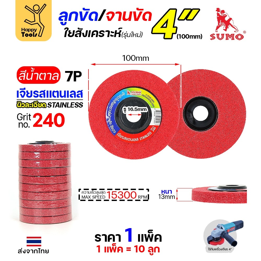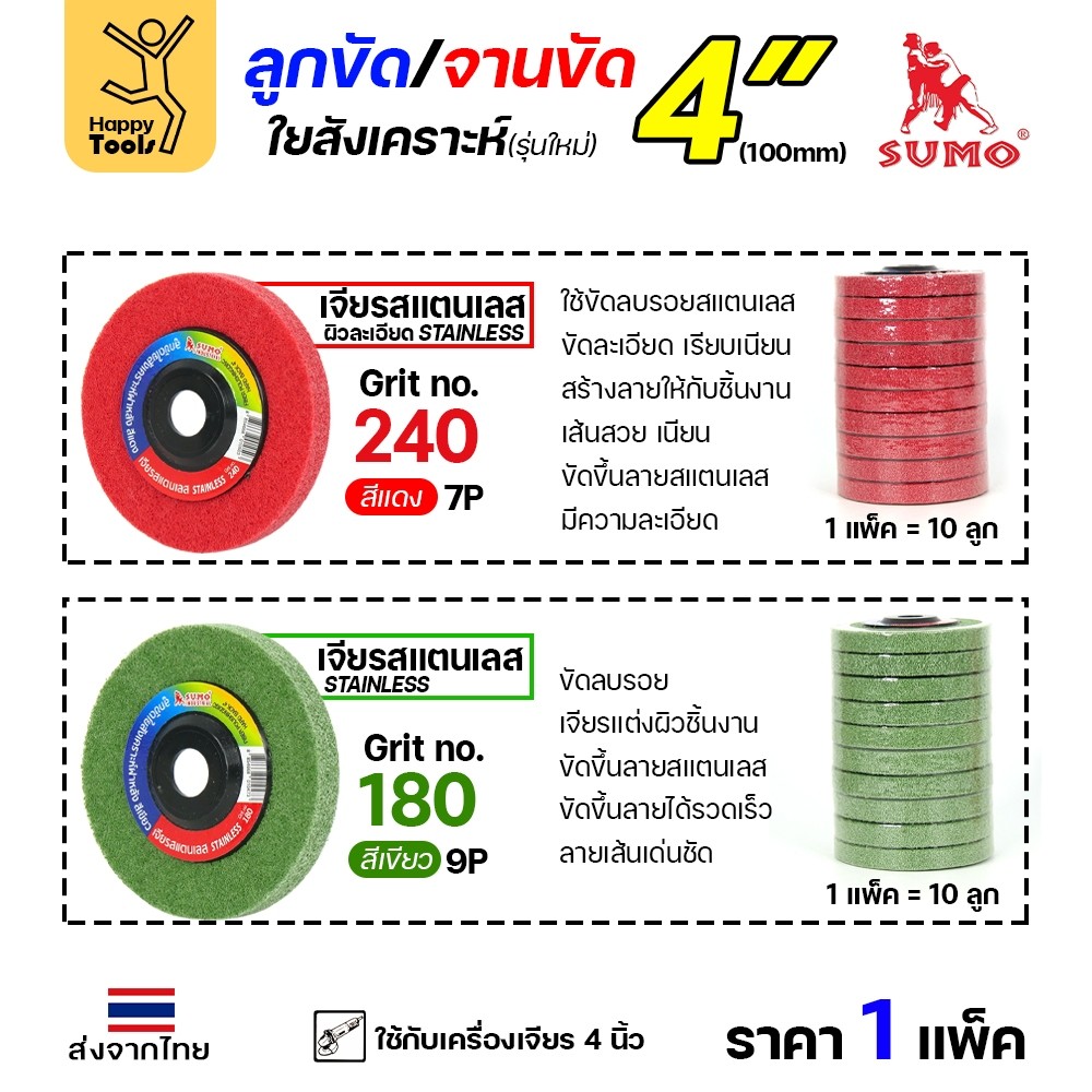 ใช้งานกับ: เหมาะสำหรับ ขัดลบรอยสแตนเลส ขัดละเอียดเรียบเนียน สร้างลายให้กับชิ้นงาน เส้นสวย เนียน ขัดขึ้นลายเส้นสเเตนเลส มีความละเอียด ขัดแล้วไม่มีสิ่งอุดตัน