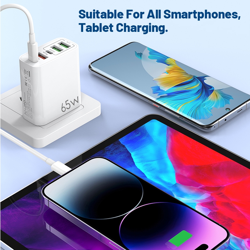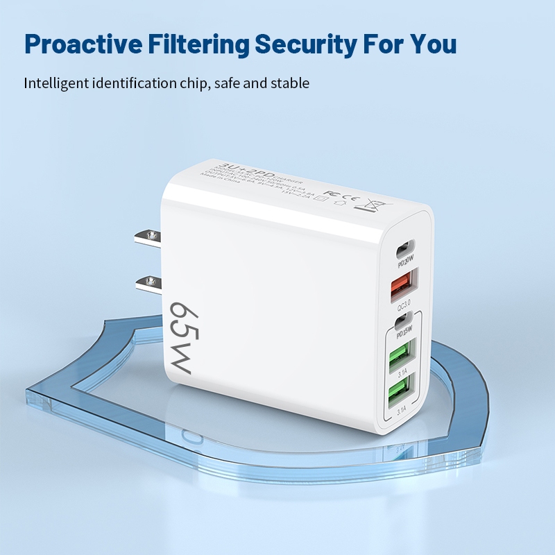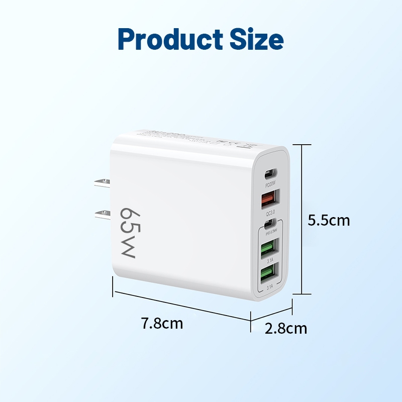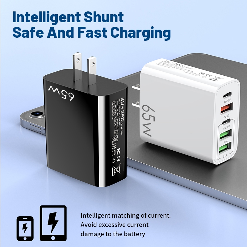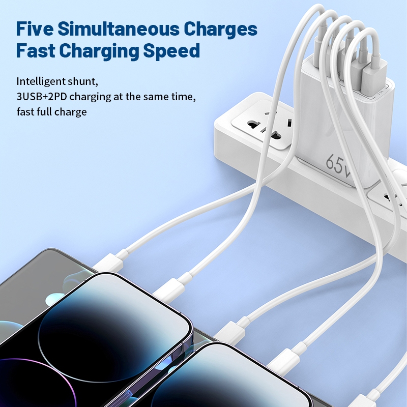 หัวชาร์จ 65W PD ชาร์จด่วน 3USB + 2 Type-C อะแดปเตอร์ชาร์จเร็ว ที่ชาร์จโทรศัพท์มือถือ