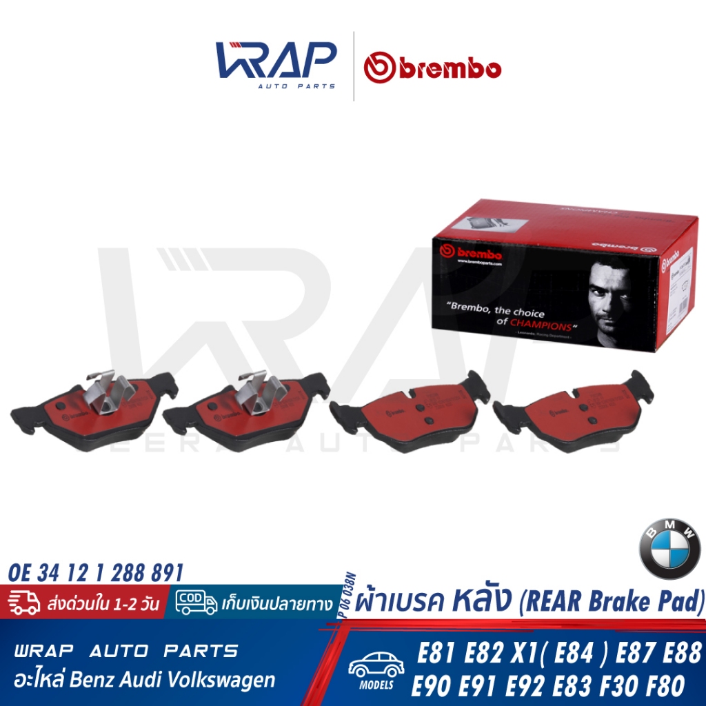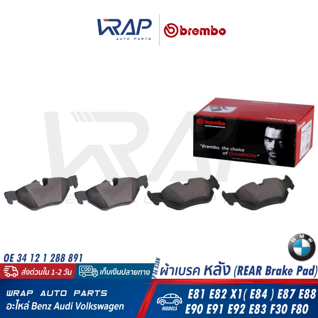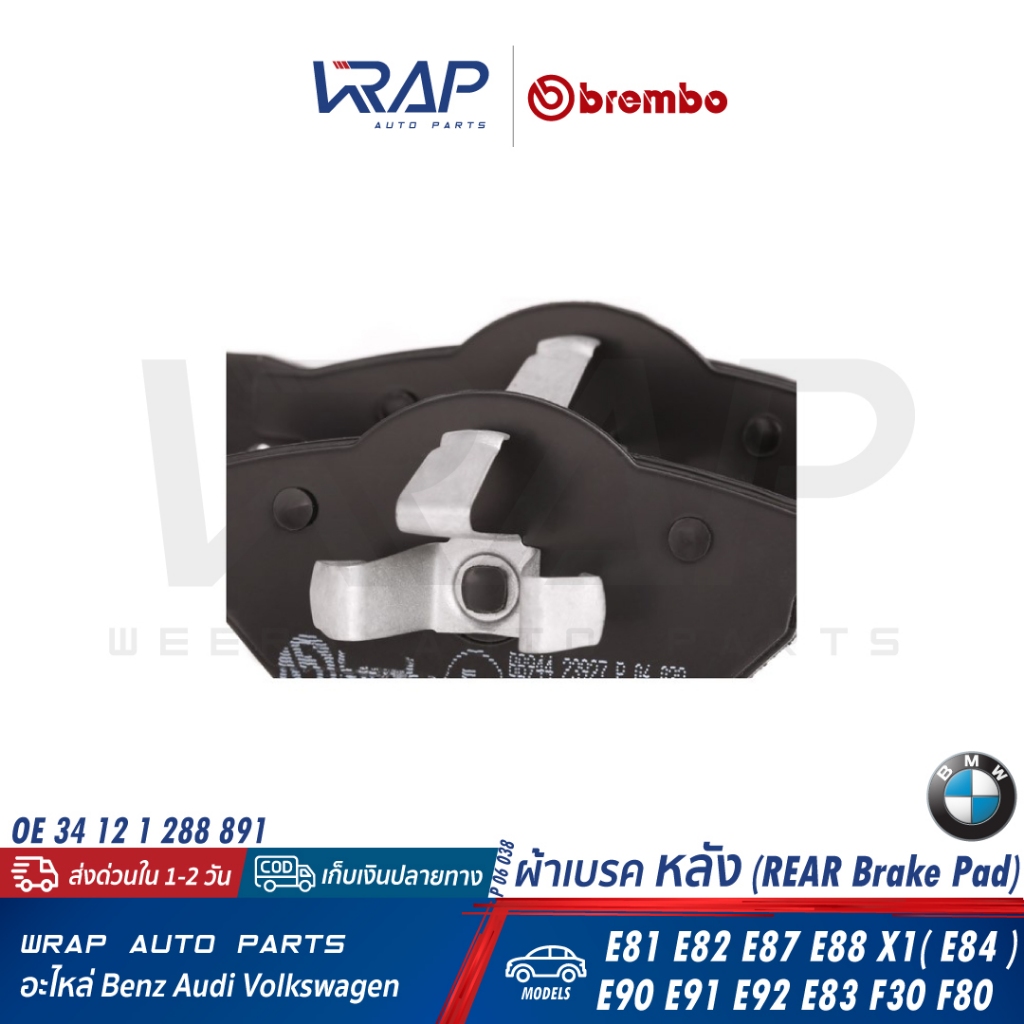⭐ BMW ⭐ ผ้าเบรค หลัง BREMBO รุ่น E81 E82 X1(E84) E87 E88 E90 E91 E92 E93 |OE 34 21 2 288 891 | P06038 P 06 038 N P06038N