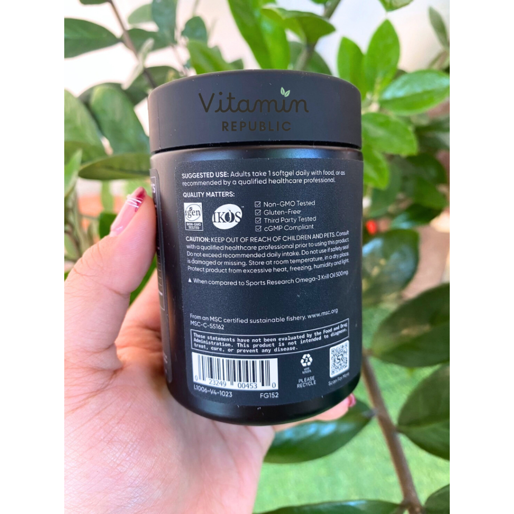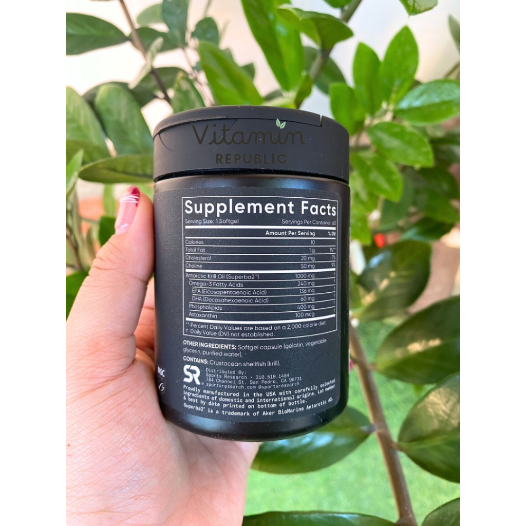 Omega-3 Krill Oil (1000 mg/60 softgels) by Sports Research ,Antarctic Krill Oil โอเมก้า3 คริลออยล์