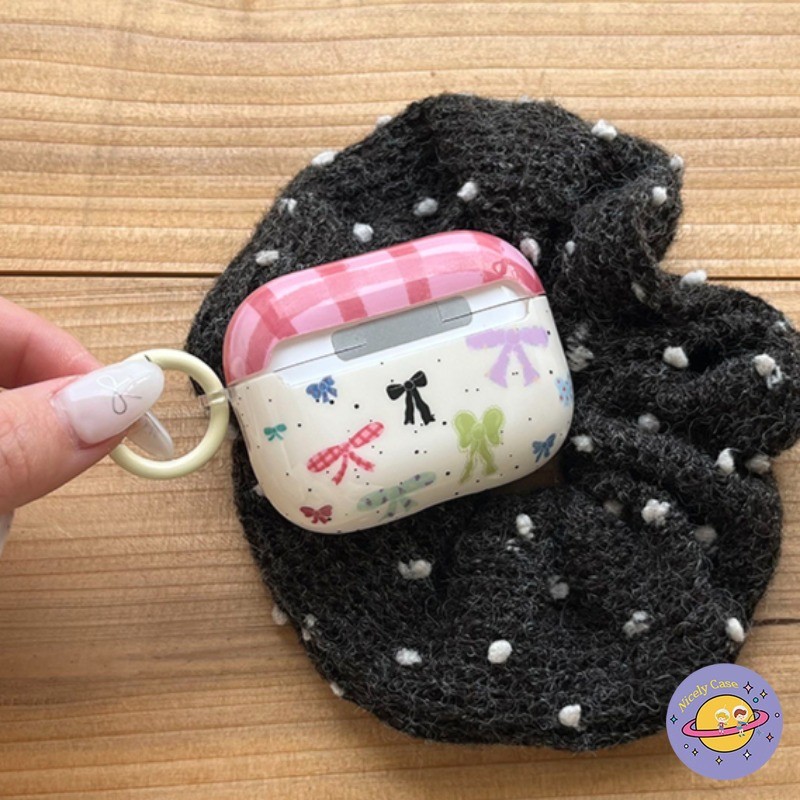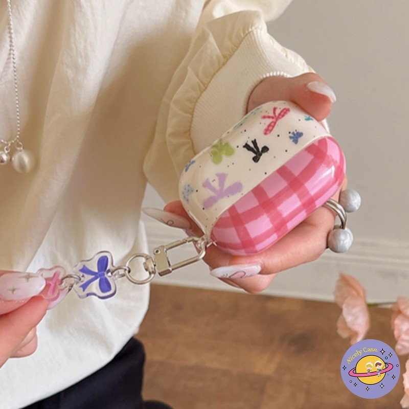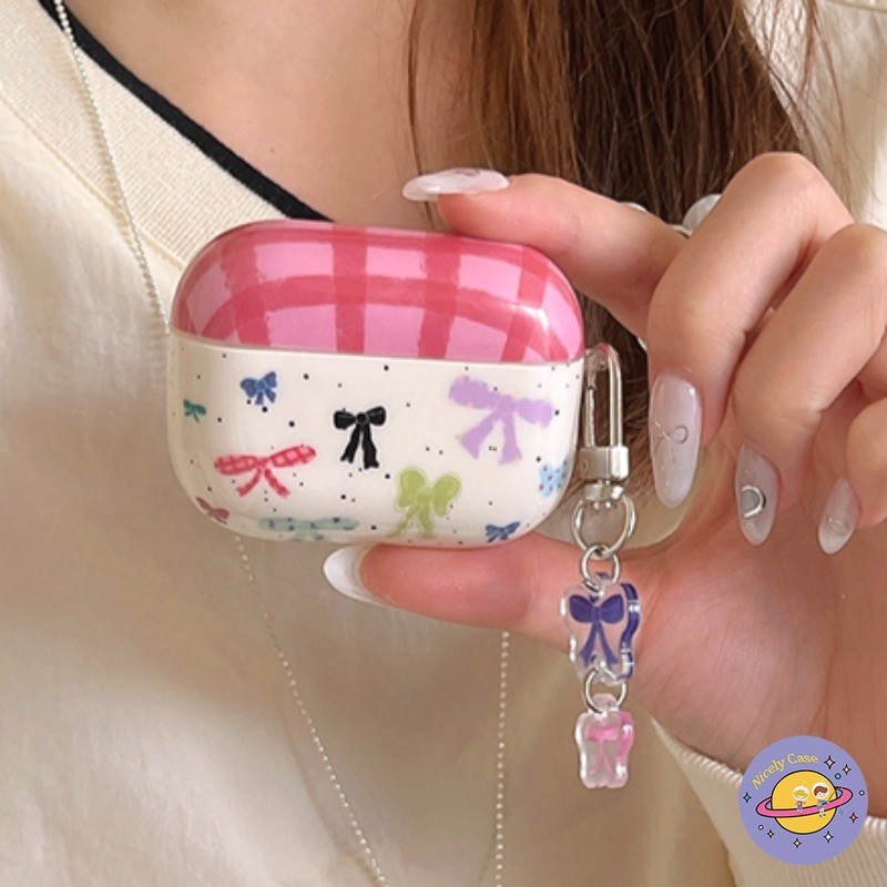 เกาหลี Bowknot ลายสก๊อต Hard IMD หูฟังไร้สายบลูทูธสําหรับ Airpods 1 2 Airpod Pro Pro2 Air Pods 3 4 ตะขอหัวเข็มขัดเต็มรูปแบบ Protector ฝาครอบ