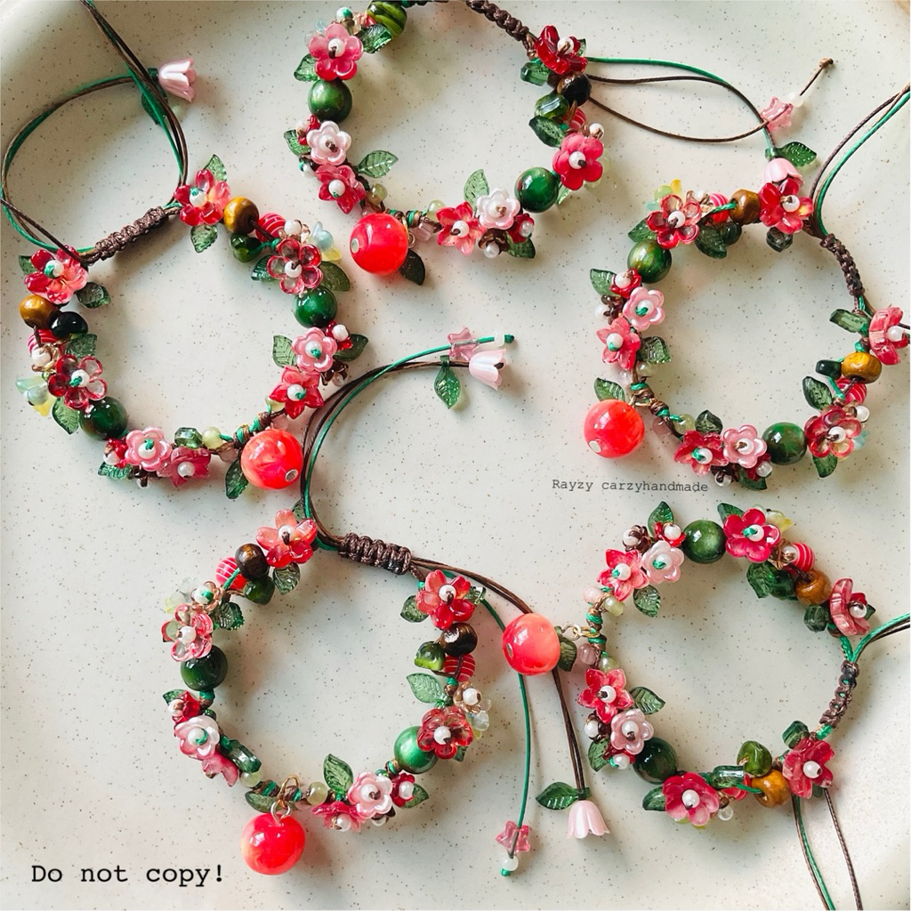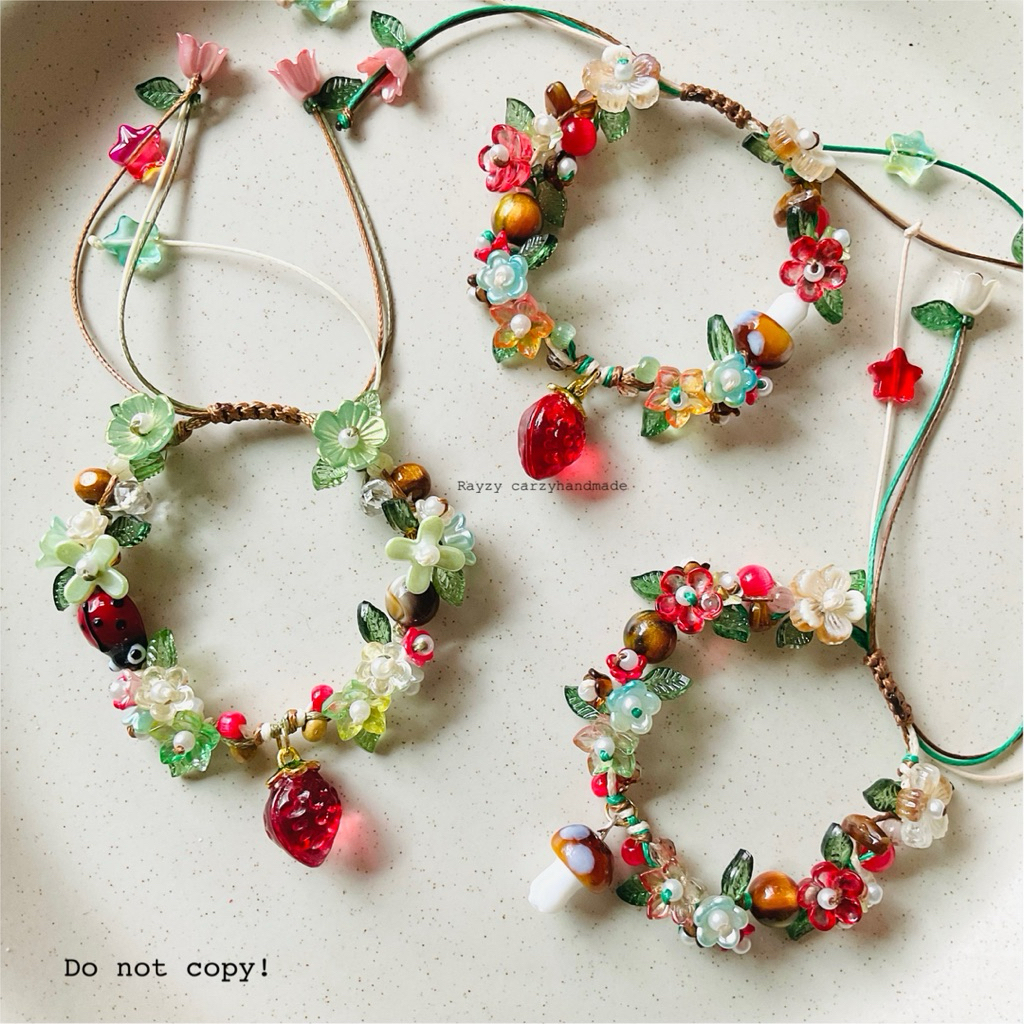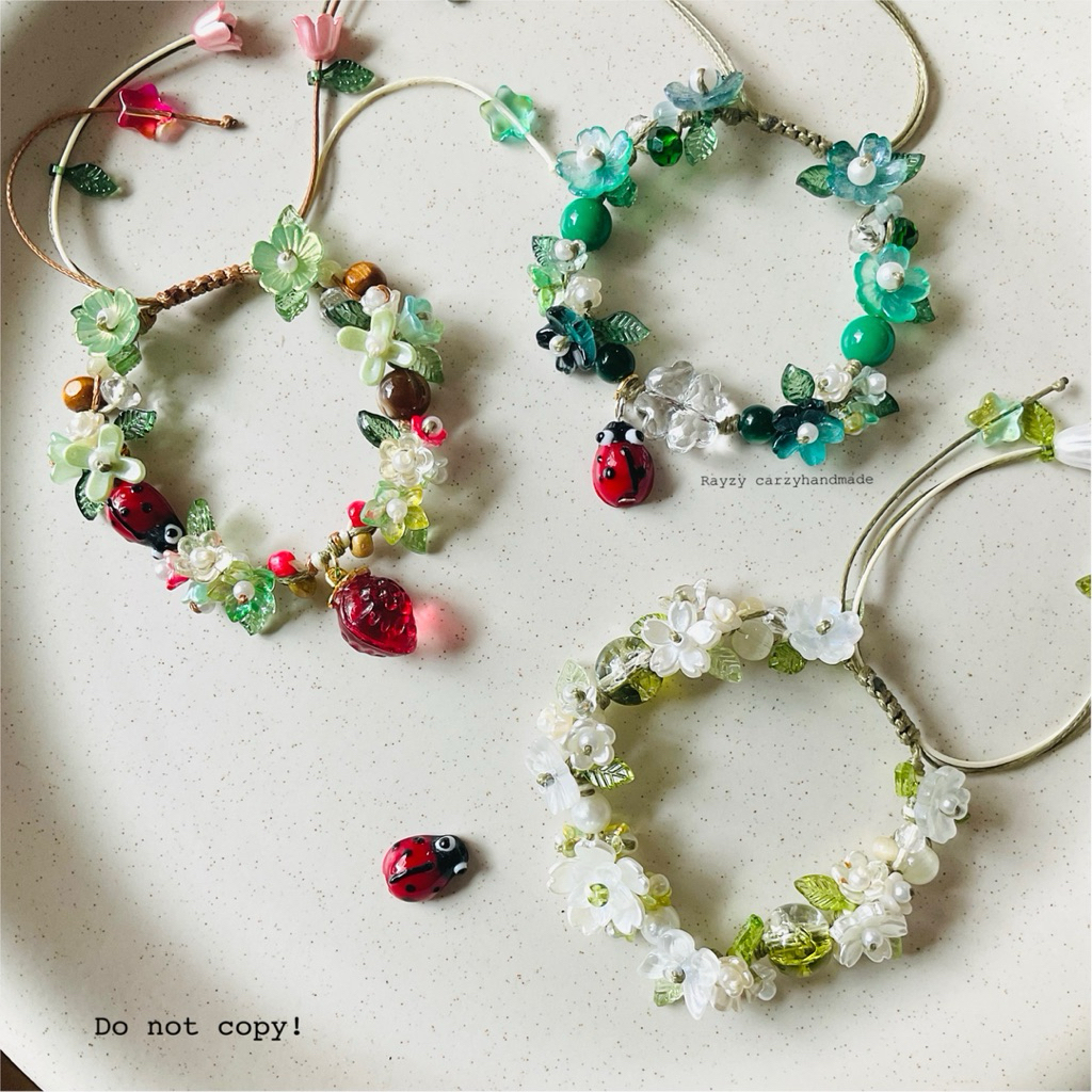 🍃 วัสดุ : เชือกถักขนาดเล็ก/ ลูกปัดแก้ว/ เรซิ่นและคริสตัลคุณภาพดี