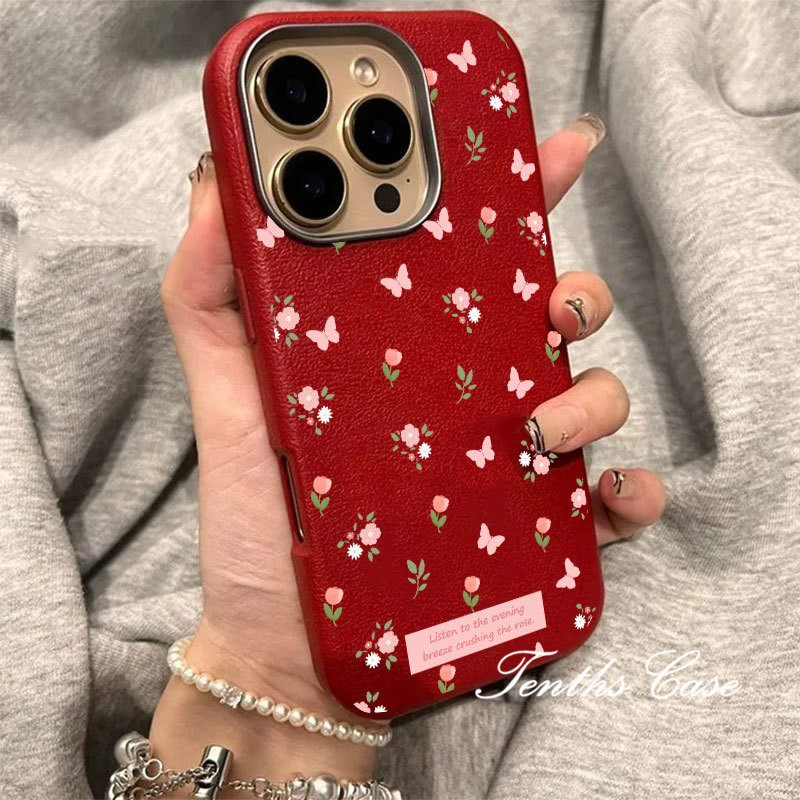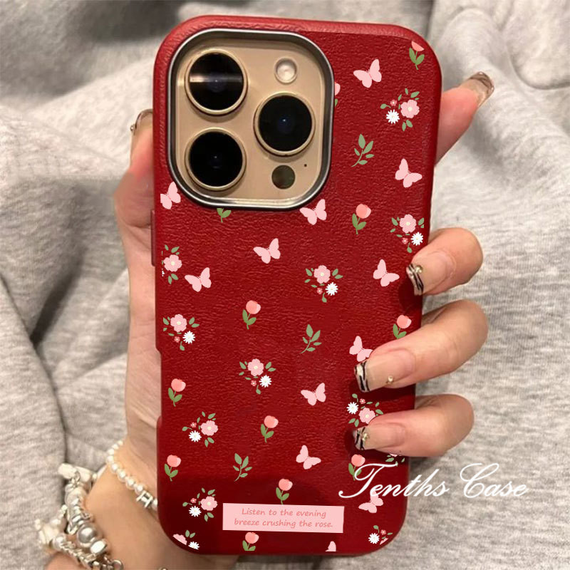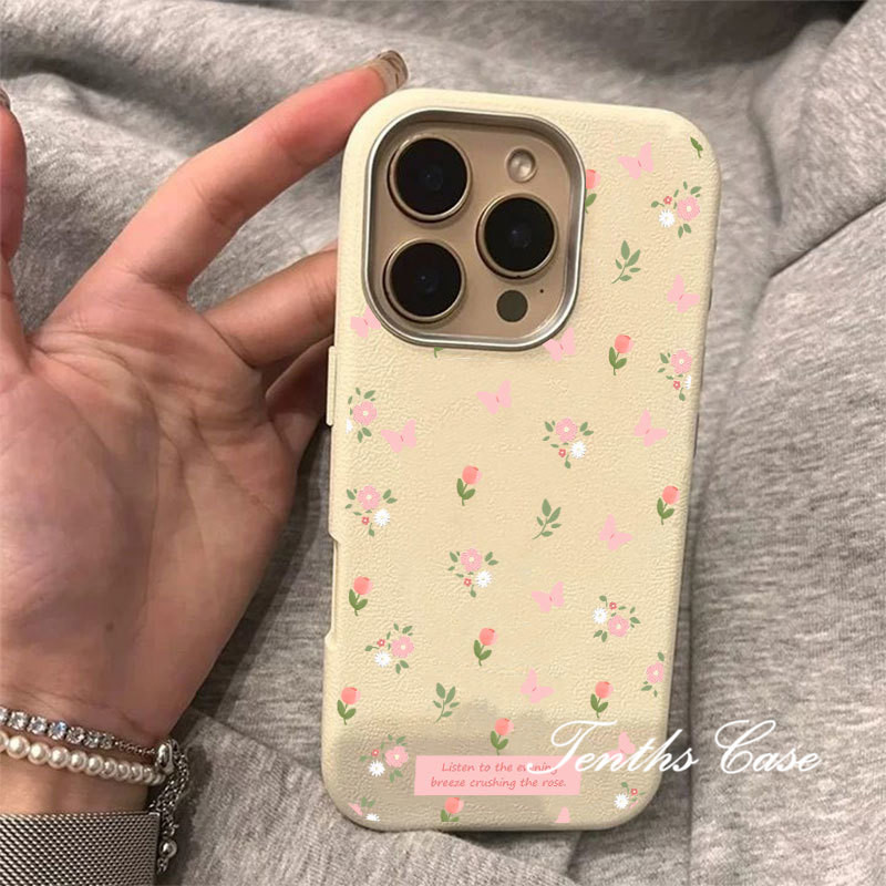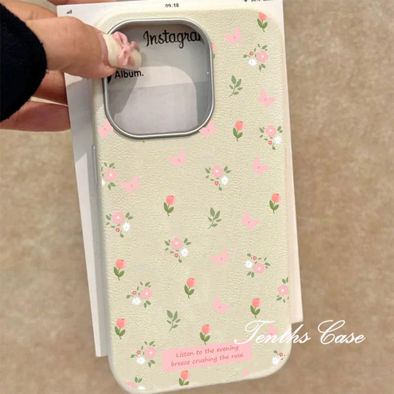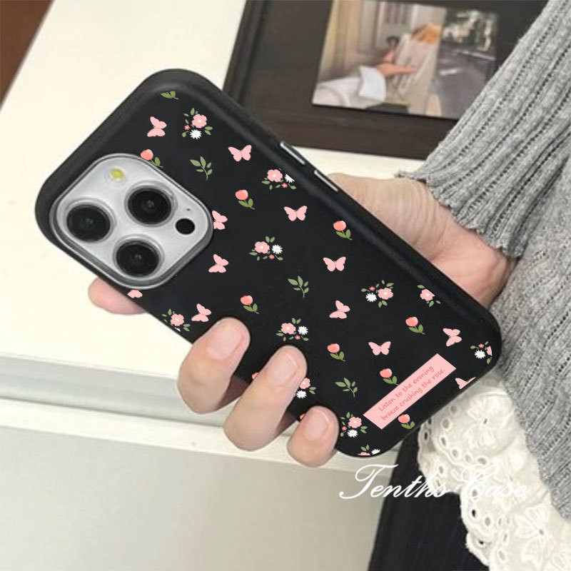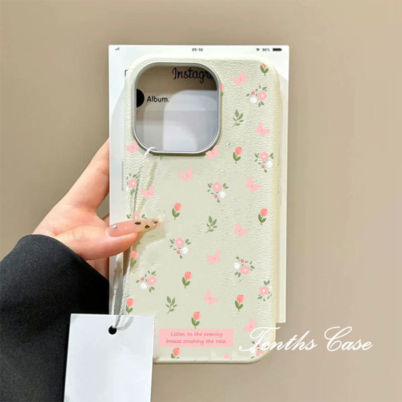 SAMSUNG สําหรับsamsung S24 S23 A22 A21 S20FE Plus Ultra A11 A21s A73 A72 ดอกไม้ผีเสื้อสีชมพูหนังธรรมดารูปแบบเลนส์กรอบเคสโทรศัพท์ปกอ่อน