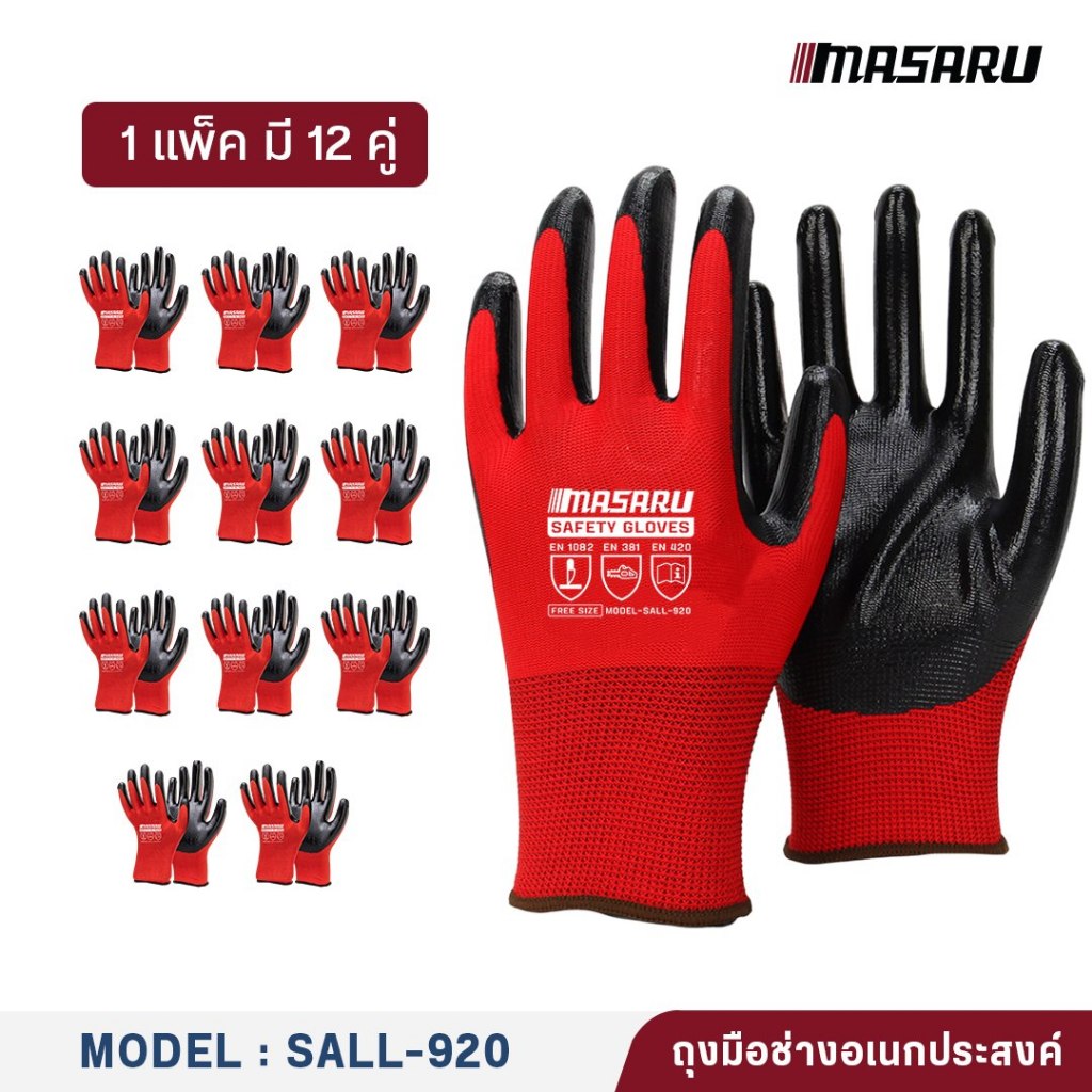 Masaru ถุงมือเคลือบยาง (GLOVE) ชุด 12 คู่ ขายยกแพ็ค