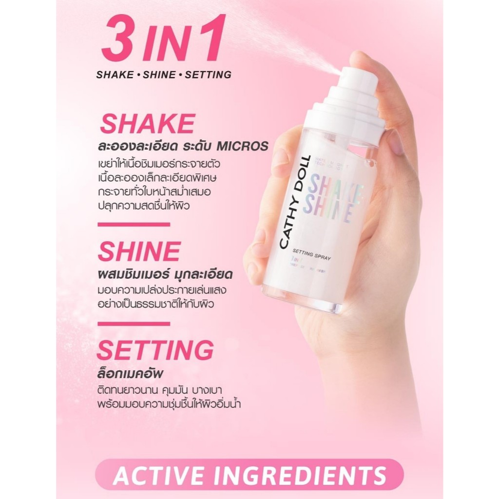 ถูก/แท้/มีไลฟ์ สเปรย์ล็อคเมคอัพ Cathy Doll Shake’n Shine Setting Spray เซ็ตติ้งสเปรย์ ล็อคเมคอัพ ชิมเมอร์ ผิวโกลว์