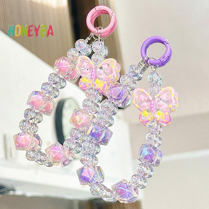 หยิบใส่ตะกร้าผีเสื้อลูกปัดโทรศัพท์พวงกุญแจสาวหวาน Anti-lost สายรัดข้อมือสร้อยข้อมือหูฟังกรณี Charm กระเป๋าตกแต่ง Nice