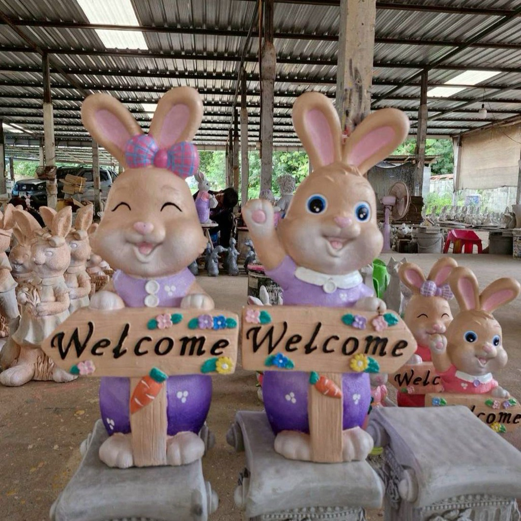 รูปแบบกระต่ายถือป้าย welcomeทั้งชายหญิง
