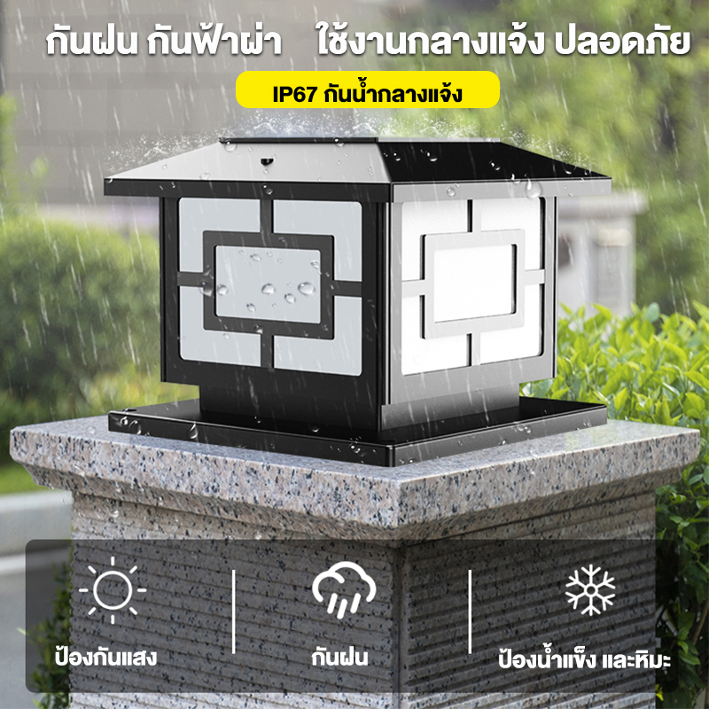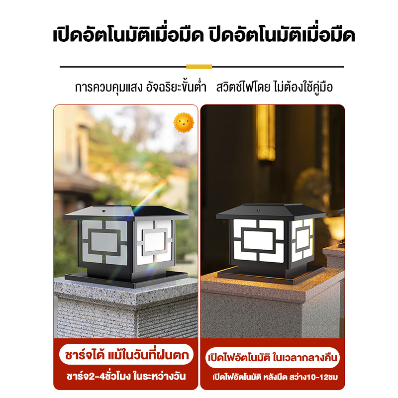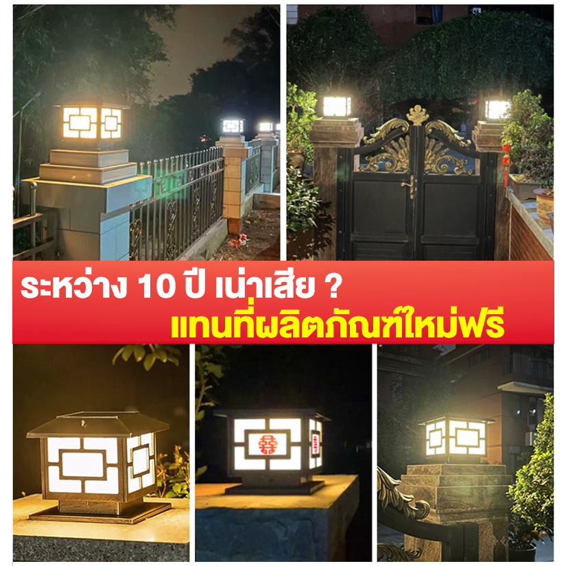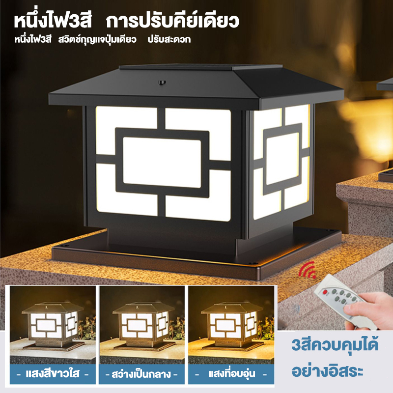 Munnysolarlamp💡ซื้อ1 แถม1💡 โคมไฟหัวเสาโซล่าเซลล์ ไฟสวนโซล่าเซลล์ ปรับได้ 3 สีพลังงานแสงอาทิตย์ + เสียบไฟสองแบบ