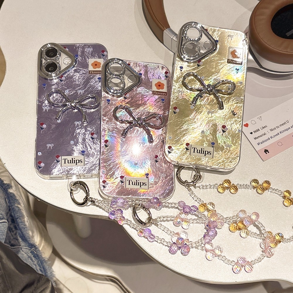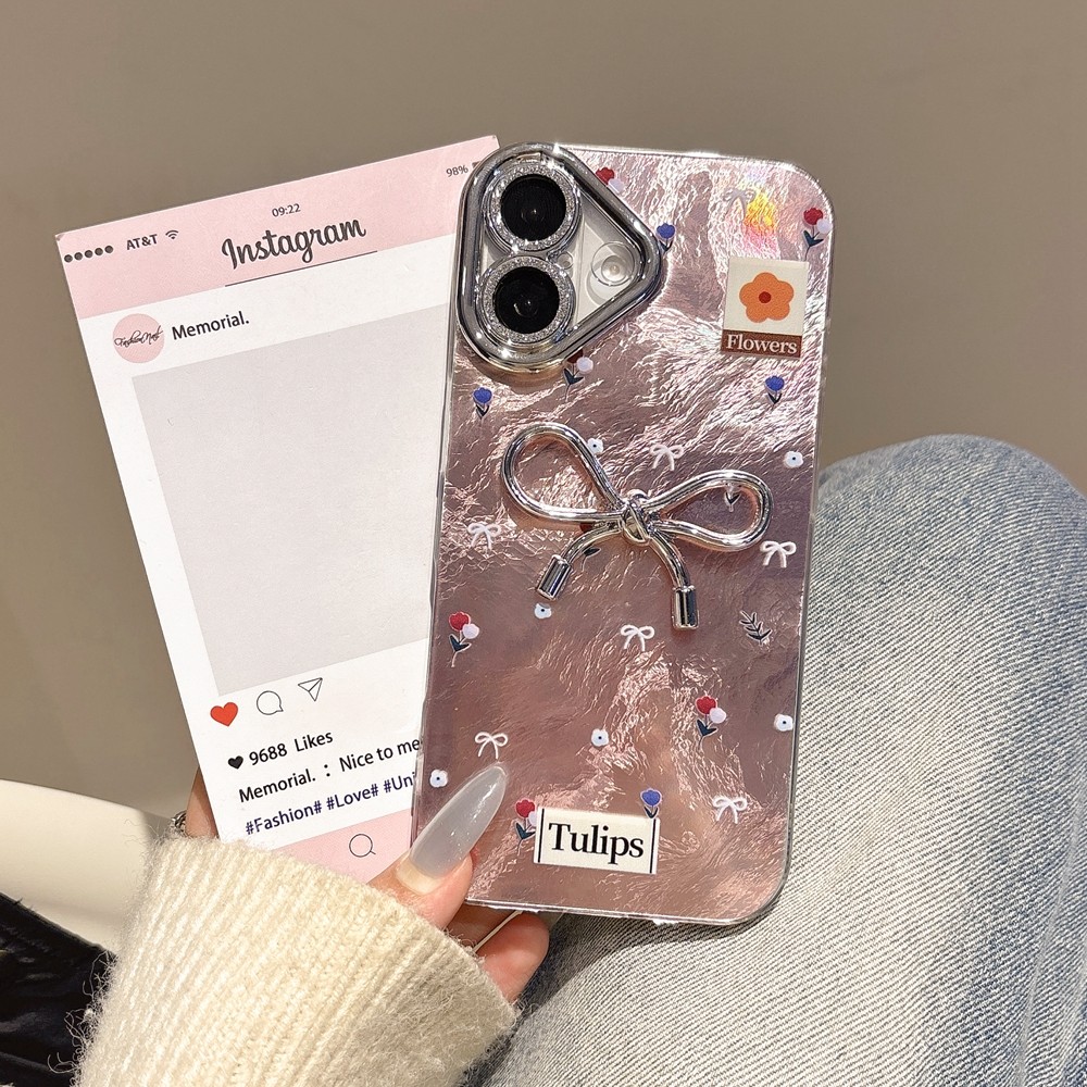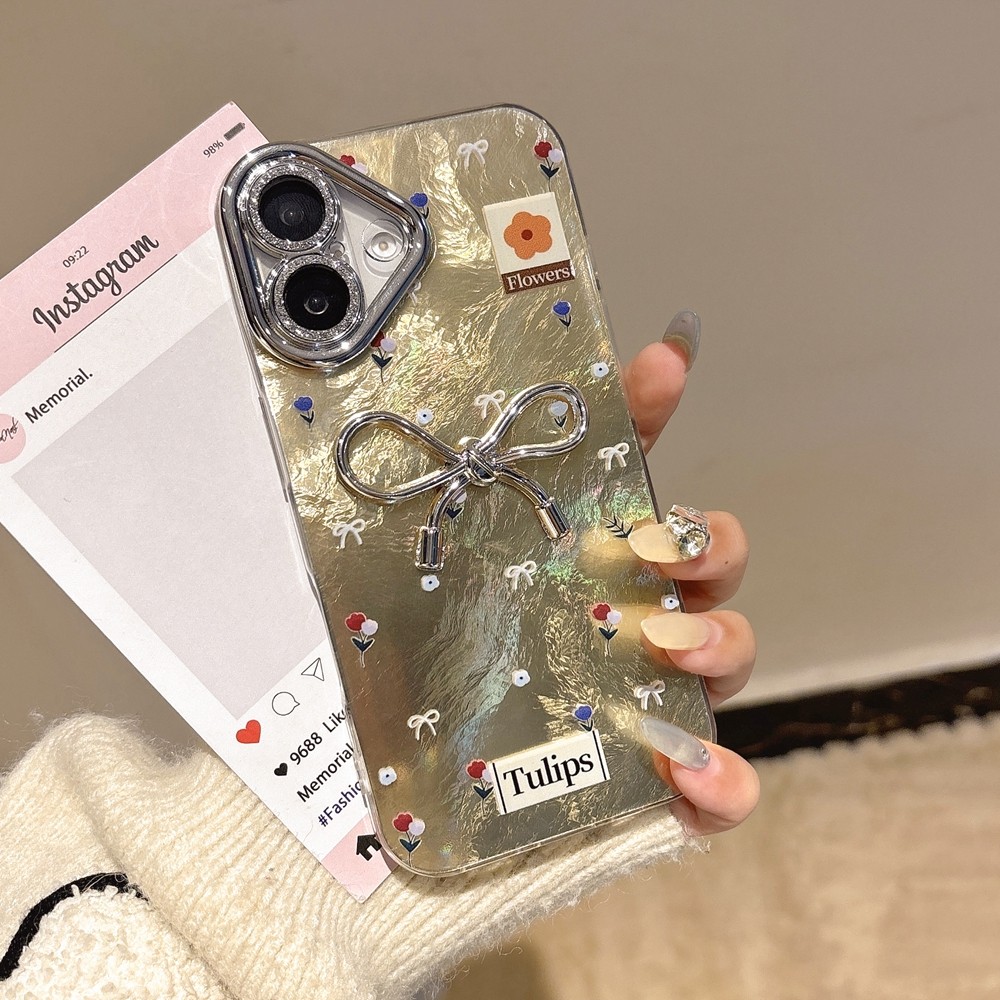 ดอกไม้ 3D Bow เหมาะสําหรับ Apple 16Promax เคสโทรศัพท์ iPhone 15/14/13/11/12 ป้องกันกล้อง