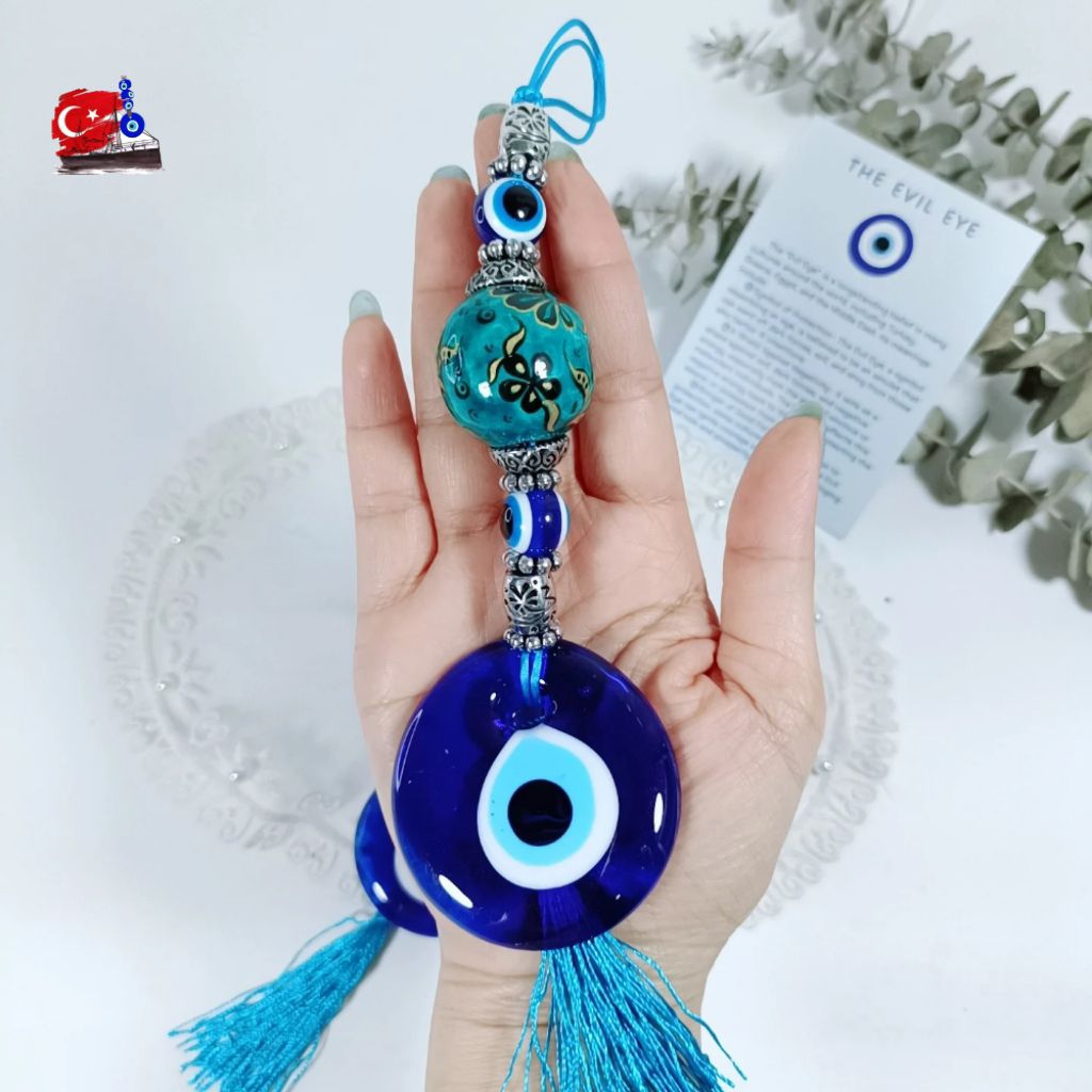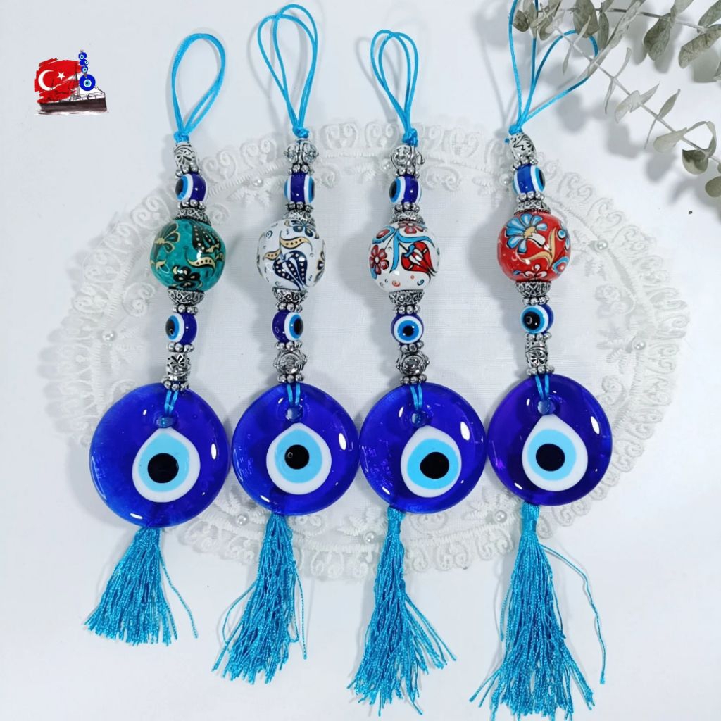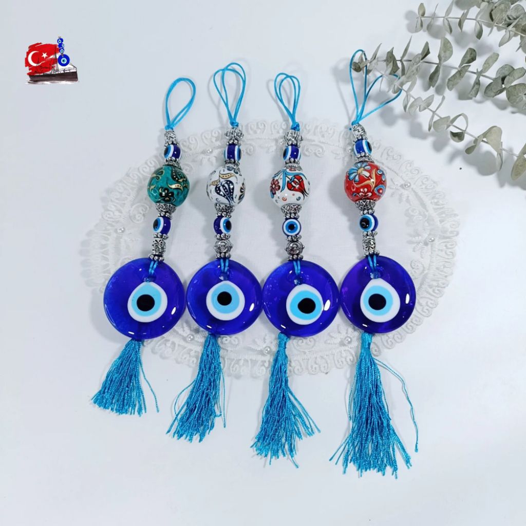 Evil Eye ของแท้ จากตุรกี โมบาย แขวนในรถ บ้าน แก้ว 5CM ตกแต่งเซรามิกงานเพ้นท์มือ ปกป้องสิ่งชั่วร้าย