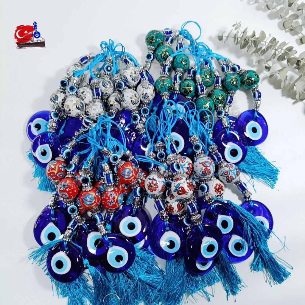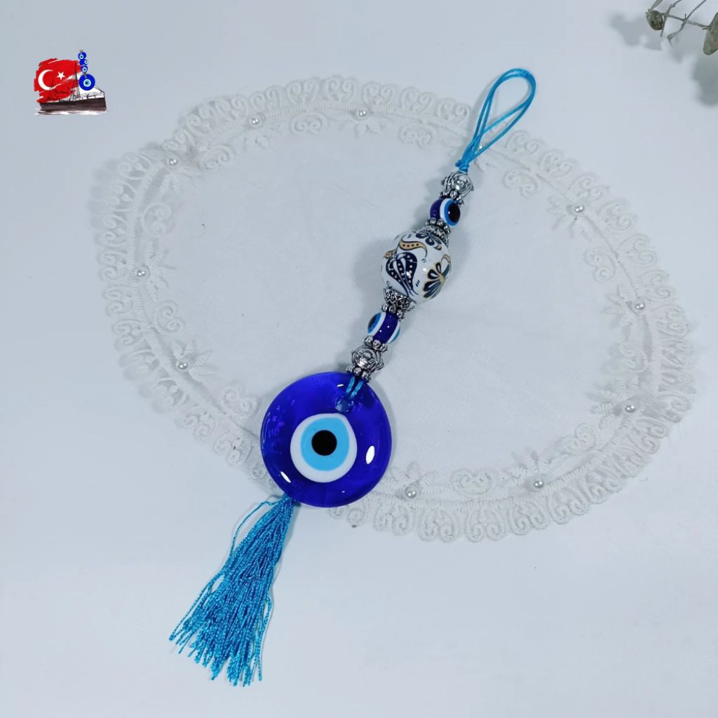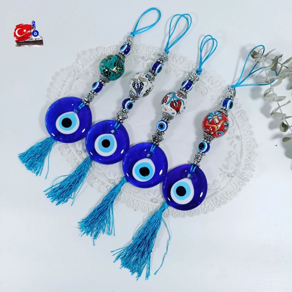 Evil Eye ของแท้ จากตุรกี โมบาย แขวนในรถ บ้าน แก้ว 5CM ตกแต่งเซรามิกงานเพ้นท์มือ ปกป้องสิ่งชั่วร้าย