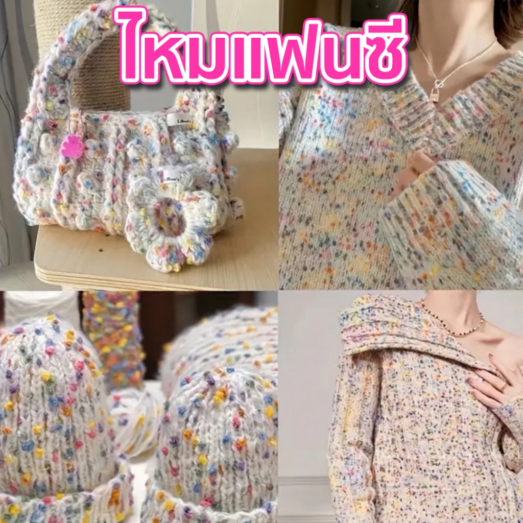 ไหมแฟนซีสำหรับตกแต่งชิ้นงาน ให้ดูดี ดูเก๋ , เหมาะสำหรับใช้ถักคู่ไปกับชิ้นงานหลัก ที่เป็นสีล้วน เพื่อเพิ่มความมีสีสรร แปลกตาของชิ้นงาน