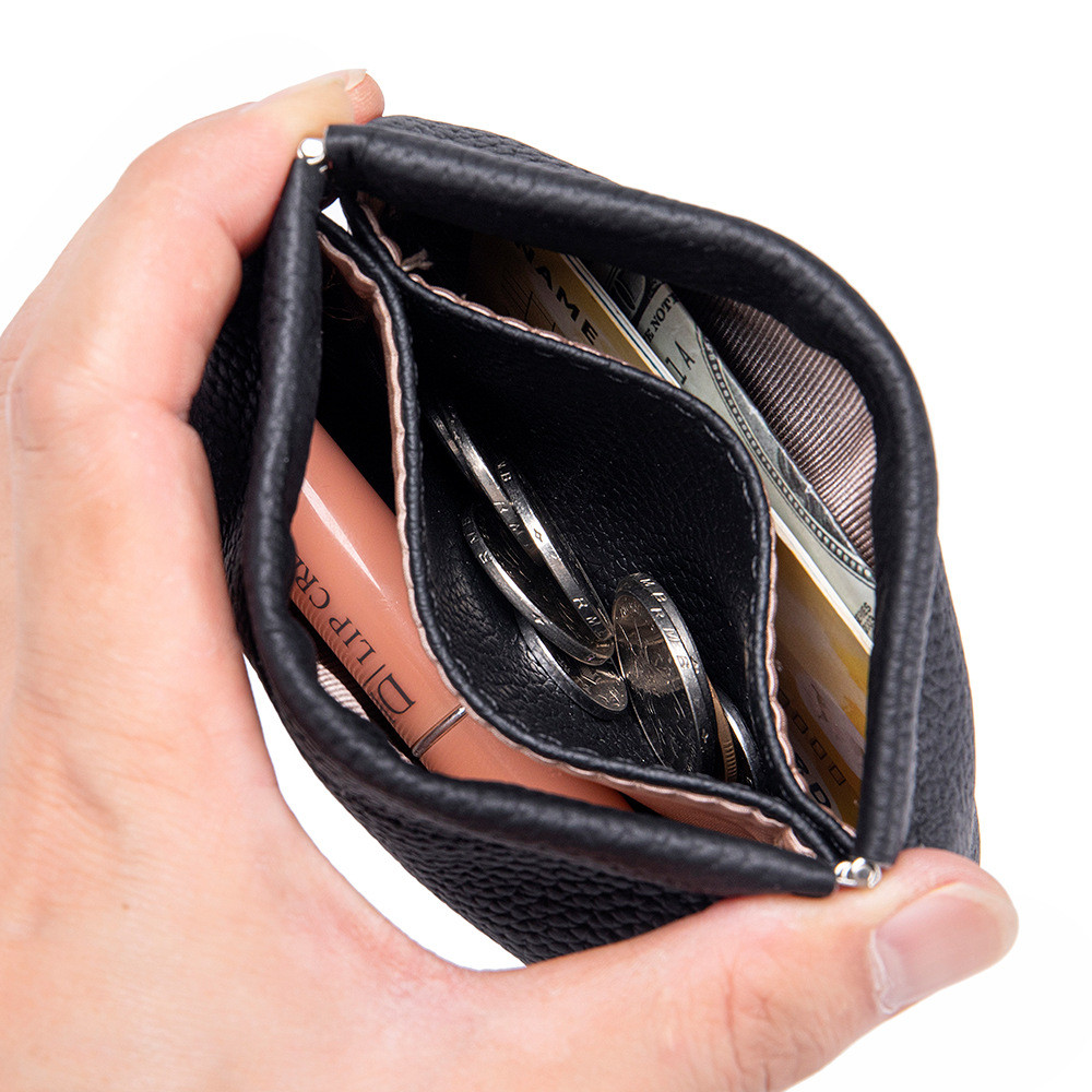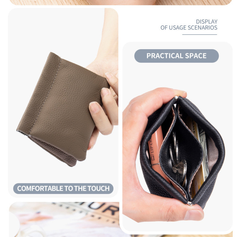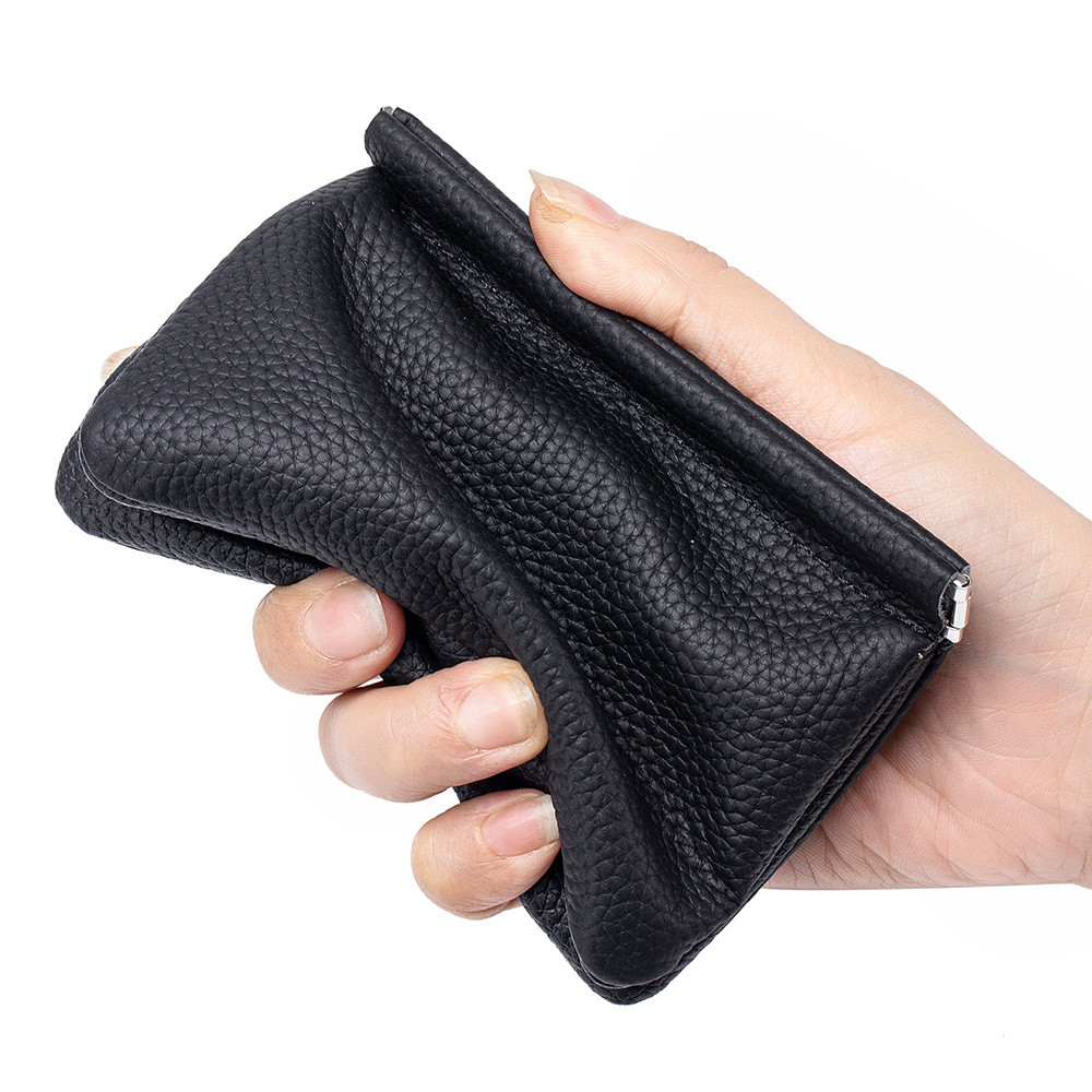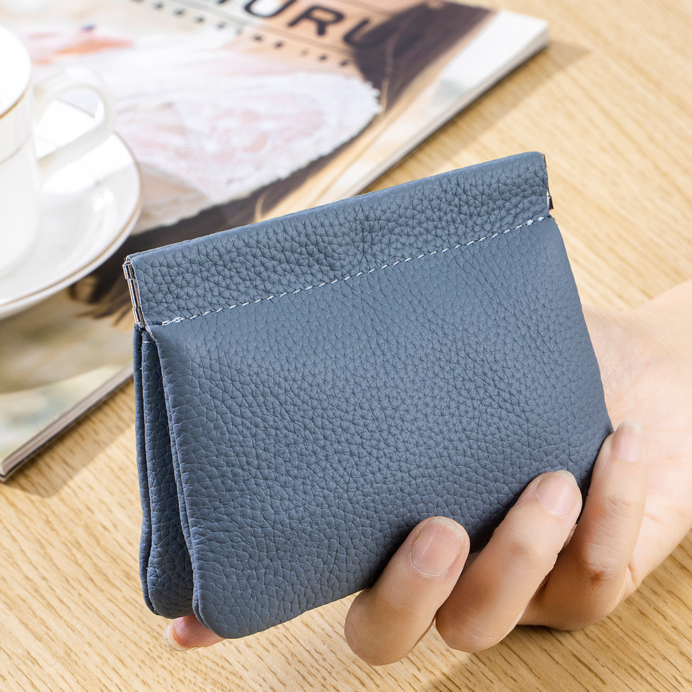 ญี่ปุ่นมินิกระเป๋าเงินเหรียญหนังลิ้นจี่แบบ เศษกระสุน ปิดอัตโนมัติผู้ถือเหรียญแบบพกพาถุงเก็บเหรียญกระเป๋าสตางค์ขนาดเล็ก