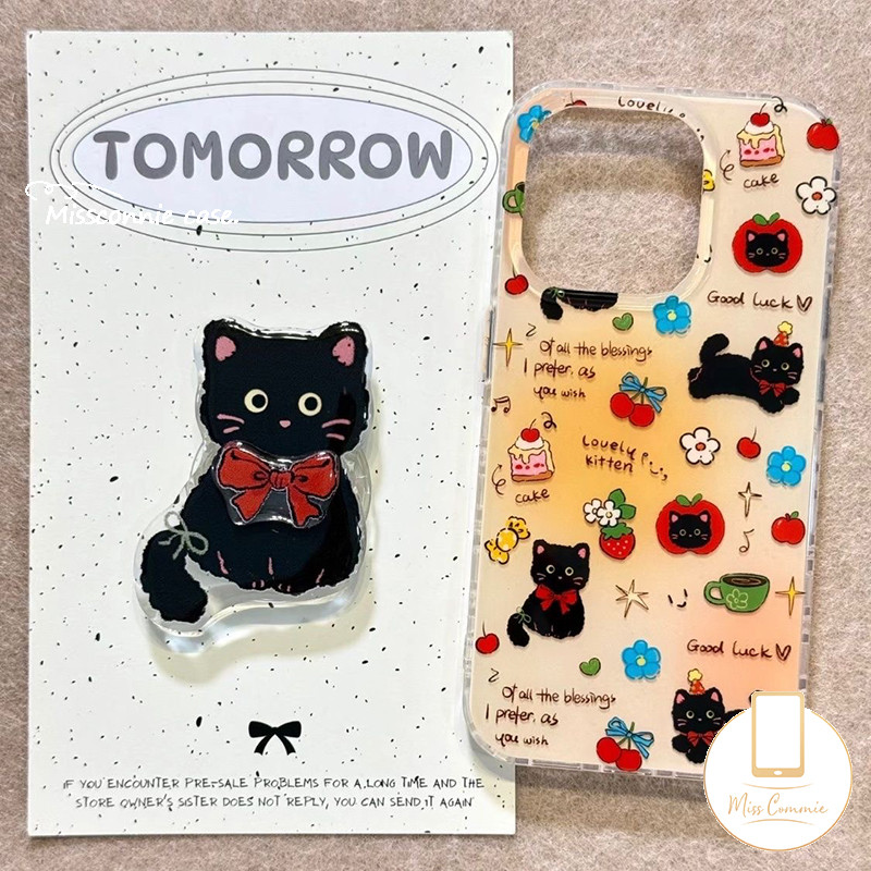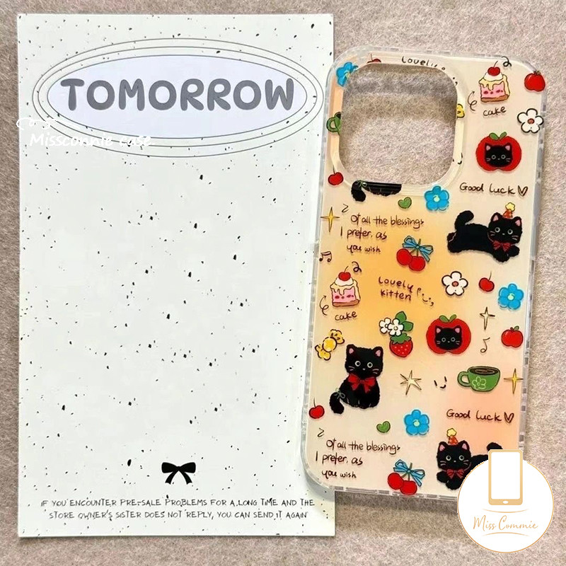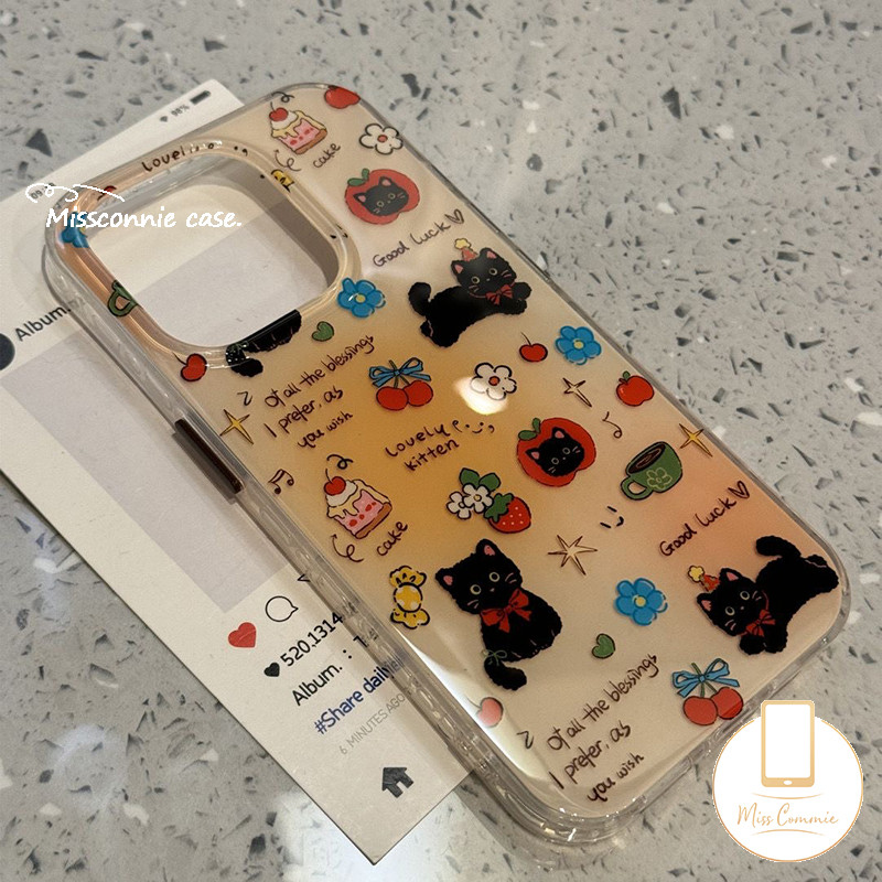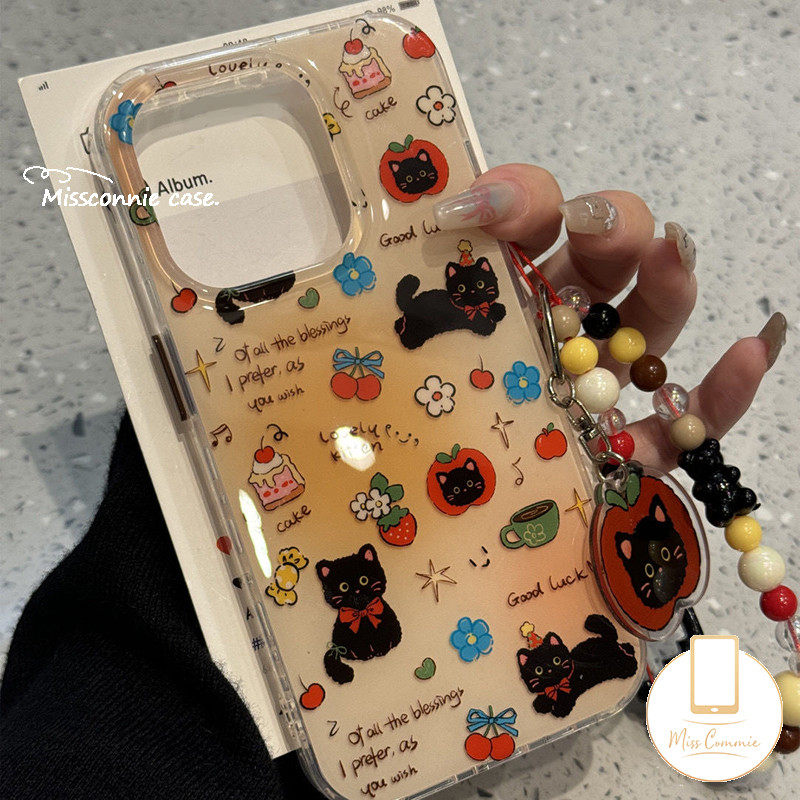 สำหรับ Samsung A06 A05 A03s A35 A16 A55 A24 A13 A12 A54 A25 A30 A51 A53 A05s A04 A32 A11 A21s A10s A15 A14 A04s A20s A34 A02s A31 A52 A50s เชอร์รี่ลูกแมวสีดำดอกไม้เคสโซ่