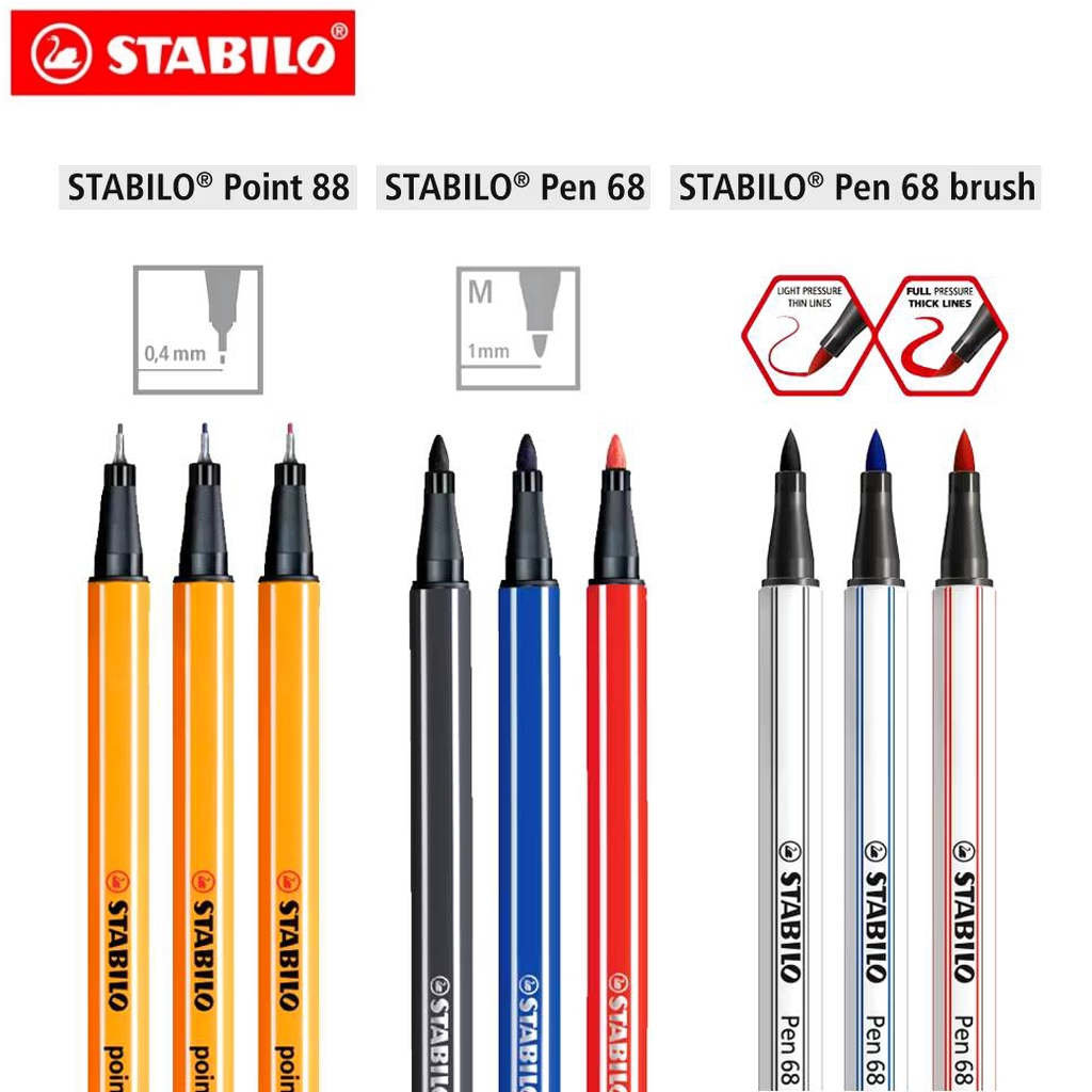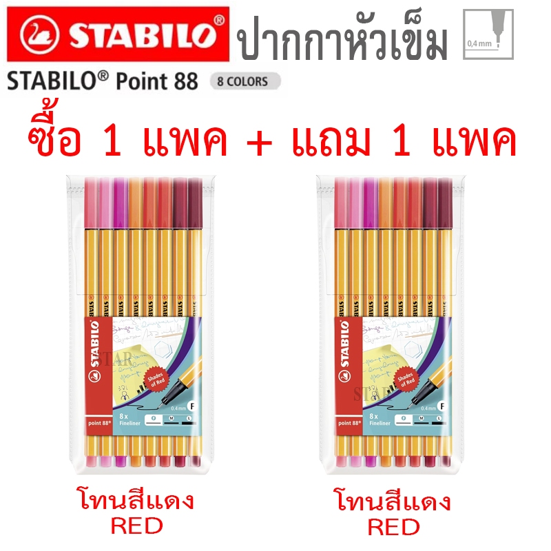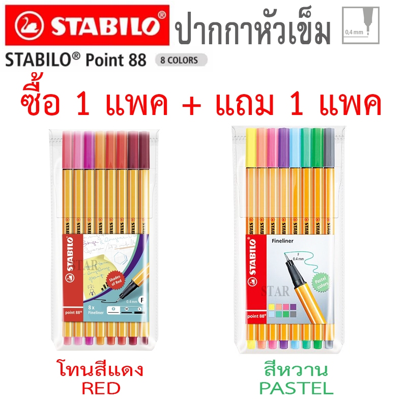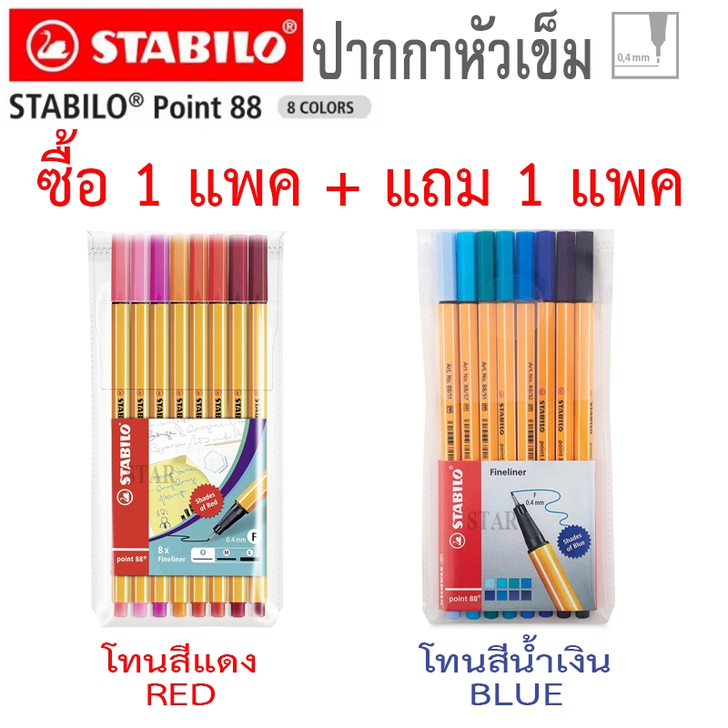 STABILO โปร ซื้อ 1 แพค แถม 1 แพค ชุดปากกาสีน้ำหัวเข็ม 8 สี Point 88 Set Pastel Blue Red Made in Germany 88/8 0.4 มิล