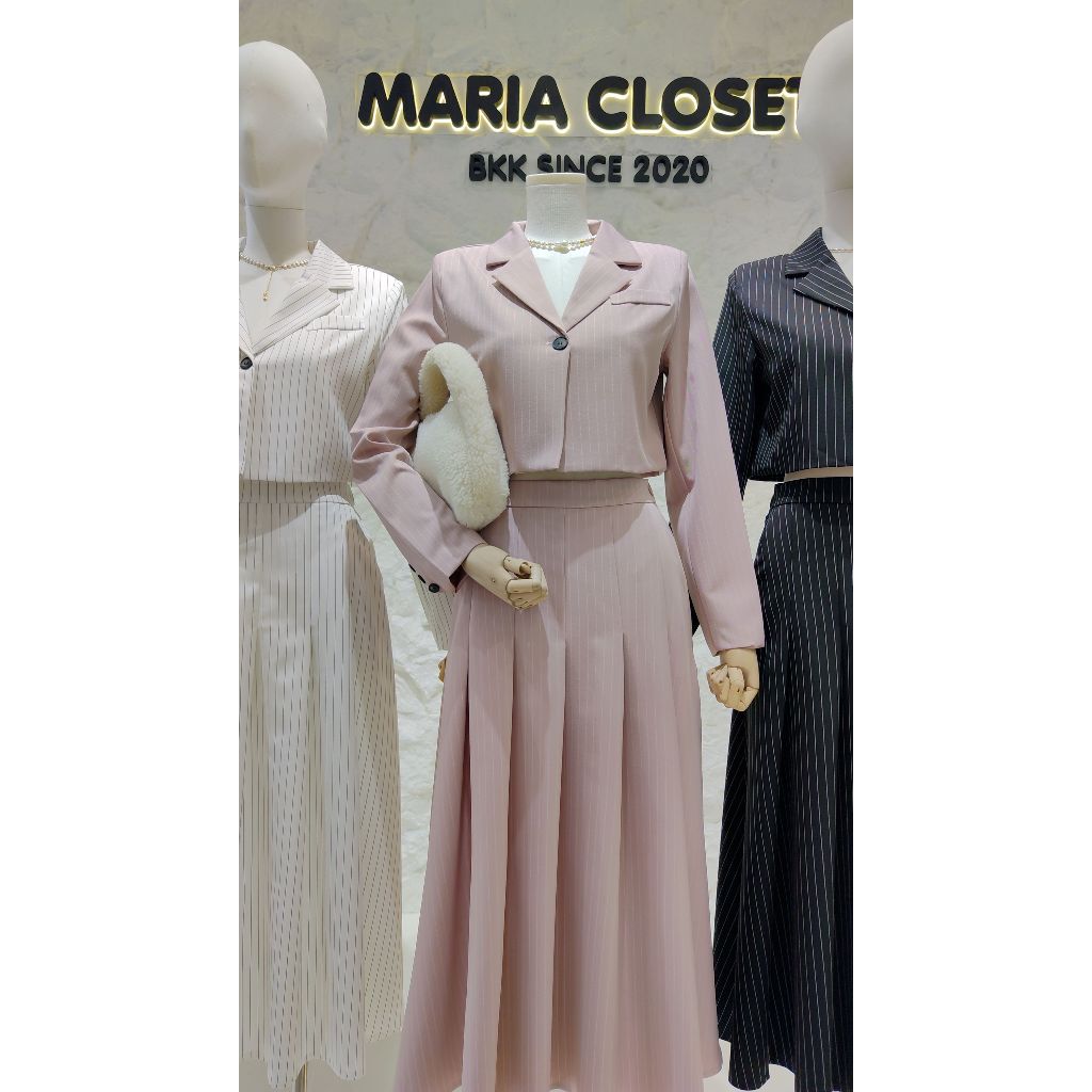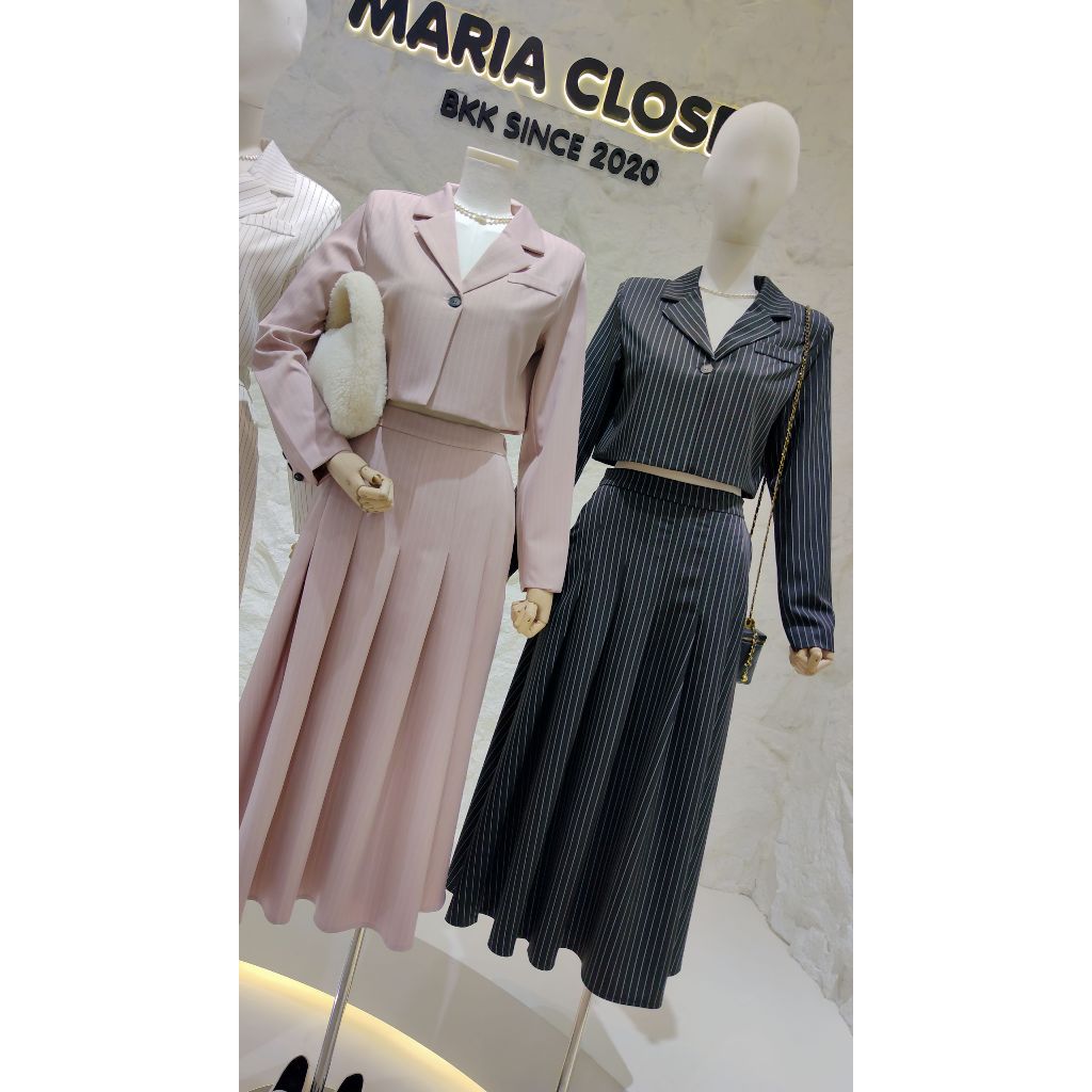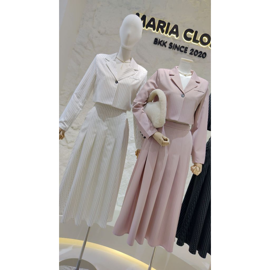 หยิบใส่ตะกร้าMaria Closet (พร้อมส่ง) ชุดเซ็ต 2 ชิ้น เบลเซอร์ครอป + กระโปรงพลีท