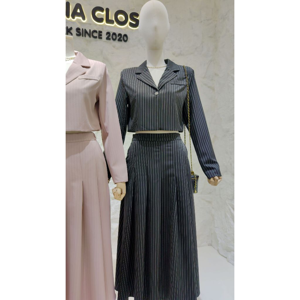 Must-have ที่สุด! เซ็ตเบลเซอร์แขนยาวทรงครอป ลายทางสุดคลาสสิก คัตติ้งเนี้ยบมากค่ะ จับคู่มากับกระโปรงยาวเอวสูง อัดพลีทสวยพริ้ว ใส่แล้วดูดีมีสไตล์สุดๆ เหมื