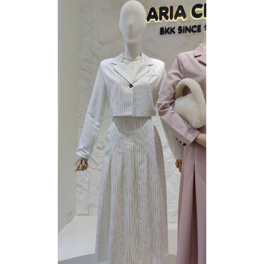 Maria Closet (พร้อมส่ง) ชุดเซ็ต 2 ชิ้น เบลเซอร์ครอป + กระโปรงพลีท