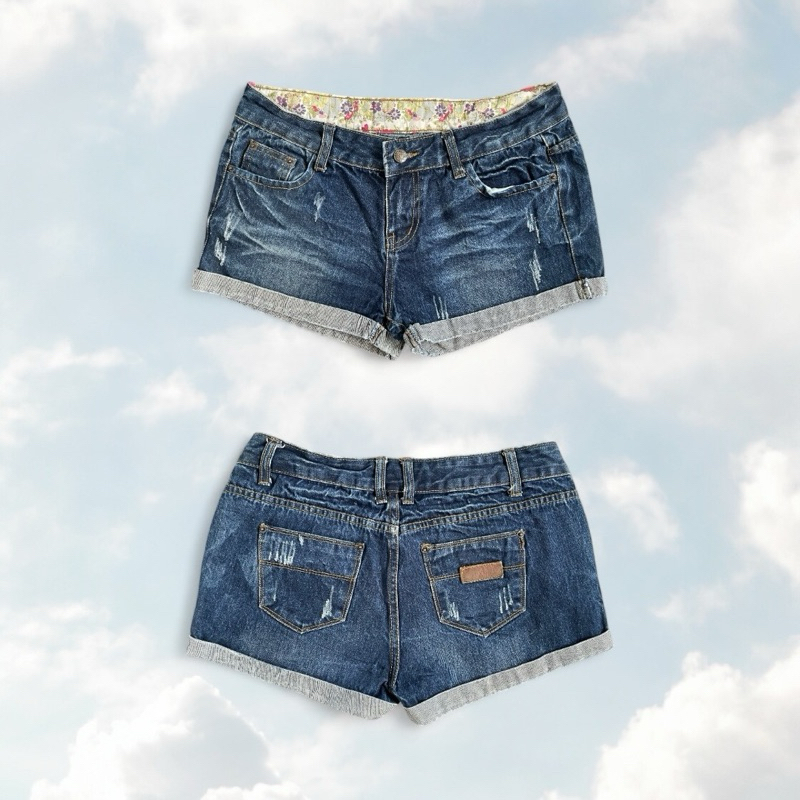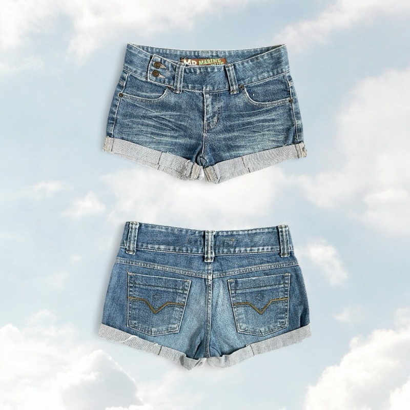 หยิบใส่ตะกร้ากางเกงขาสั้นเอวต่ำ ขาพับเก๋ๆ